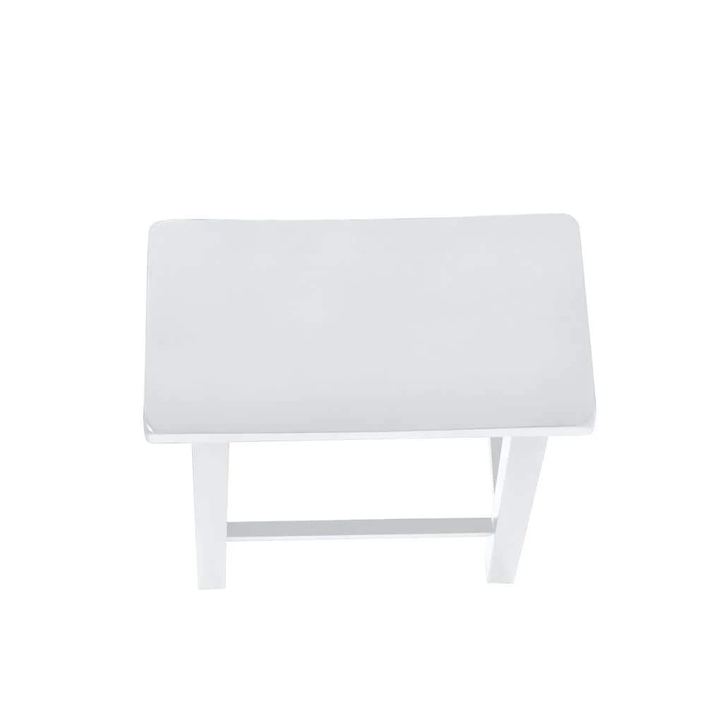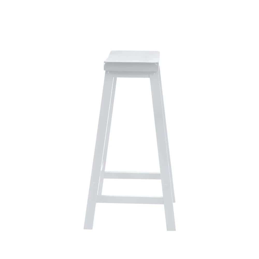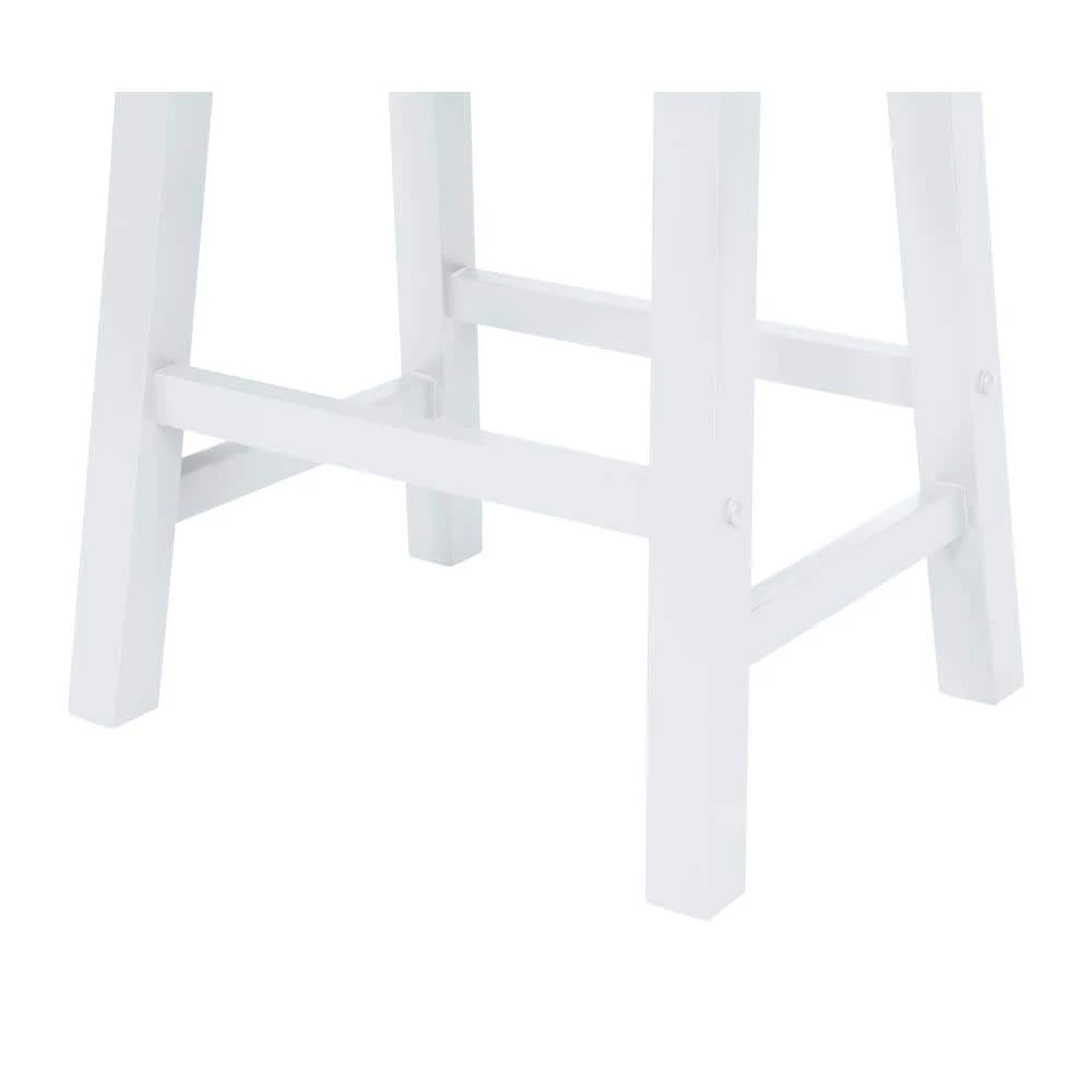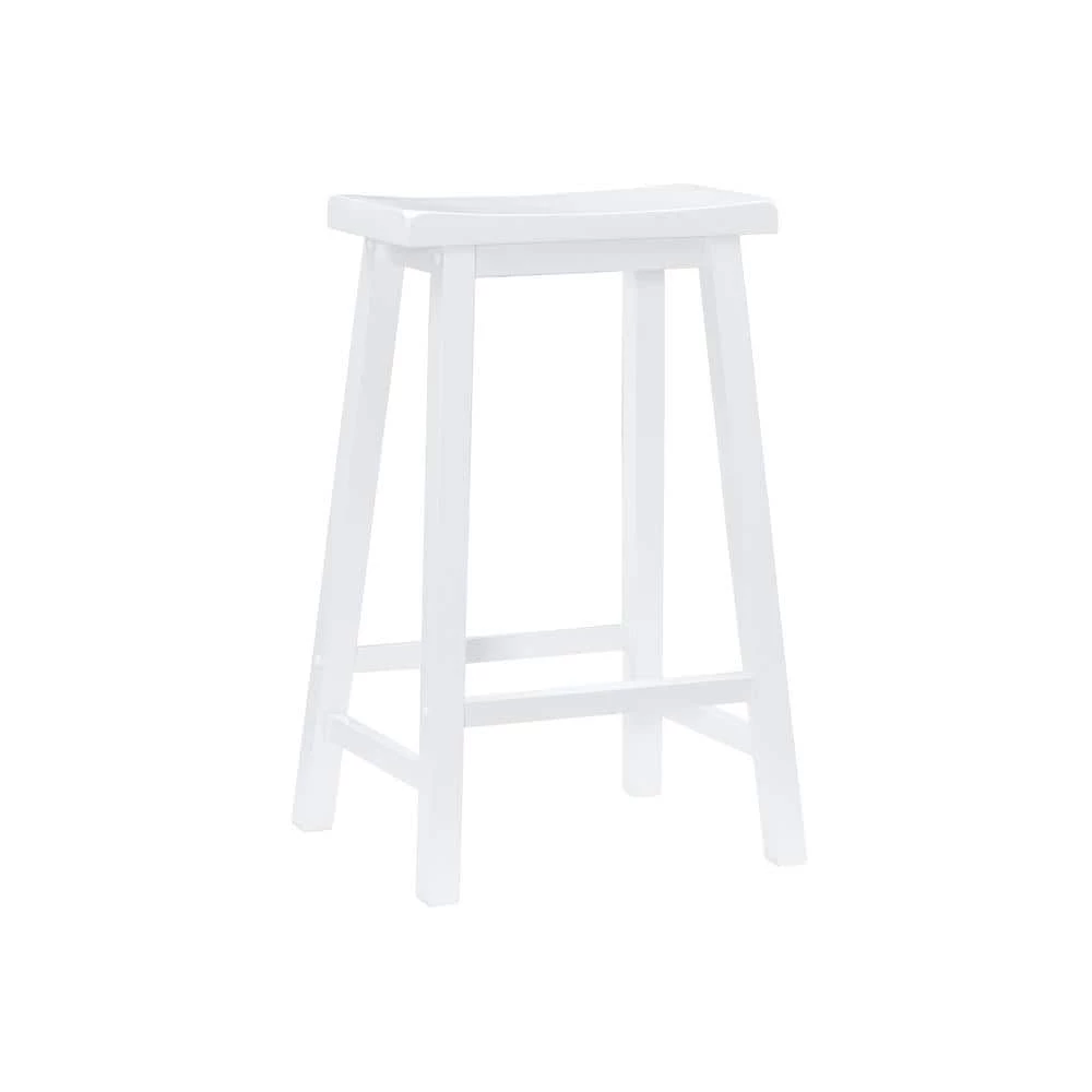 Featuring a stylish saddle design, solid rubberwood construction and smooth finish, the understated White Saddle 29 in. Barstool adds a touch of simple sophistication to any ensemble. Pull 4 up to a pub table or kitchen counter for a stylish look. Owing to its simple and practical design, this barstool easily blends with contemporary, traditional, or country style decors. The barstool has a weight capacity of 275lbs and helps maintain a good posture as you sit back and enjoy your meal or drink. It is a classic ‘schoolhouse’ style vertical slat barstool with a saddle shaped wood seat and open box stretched tapered legs.