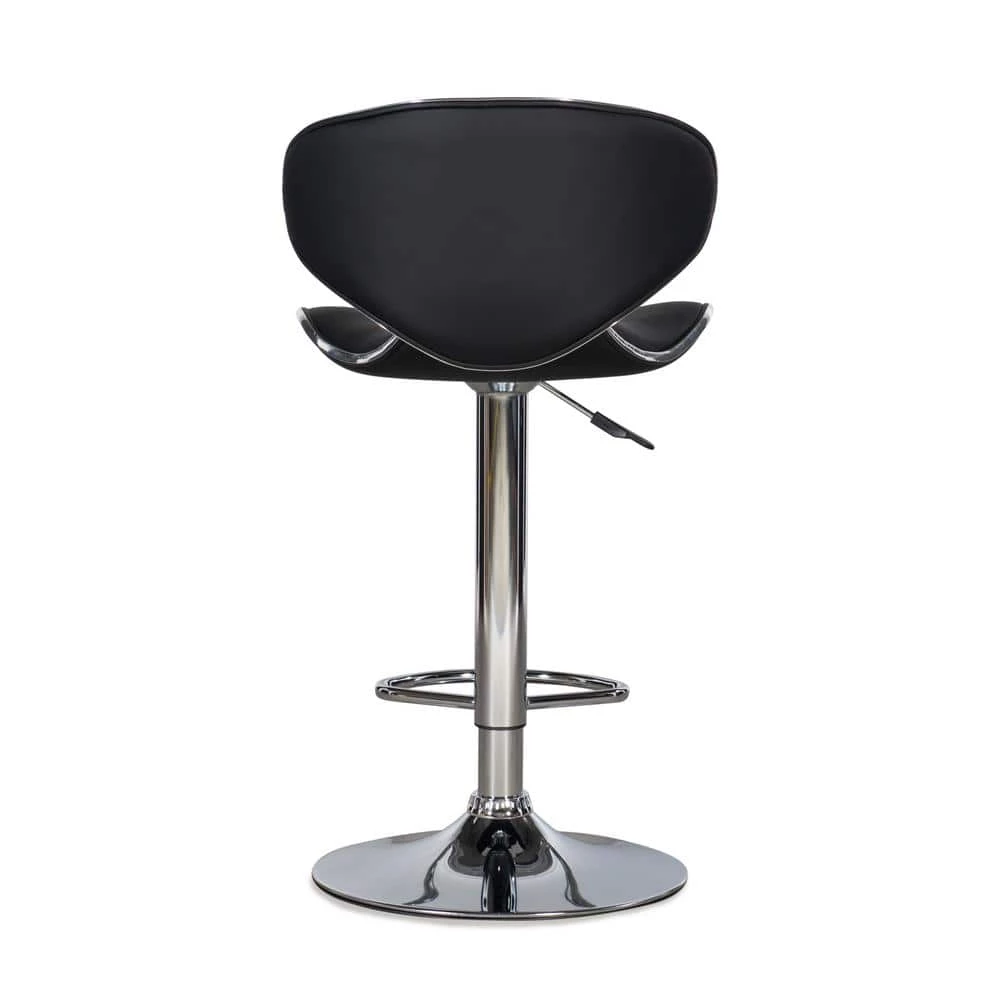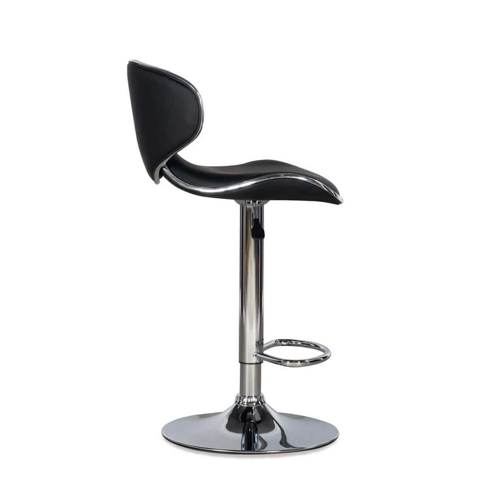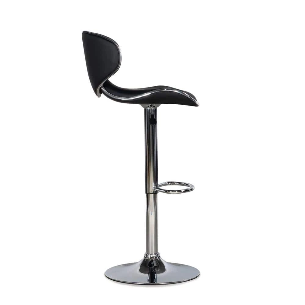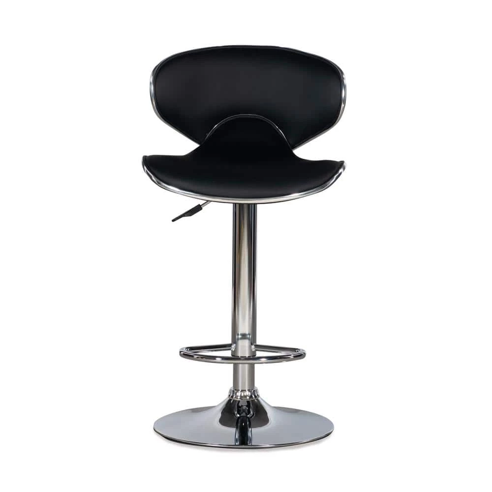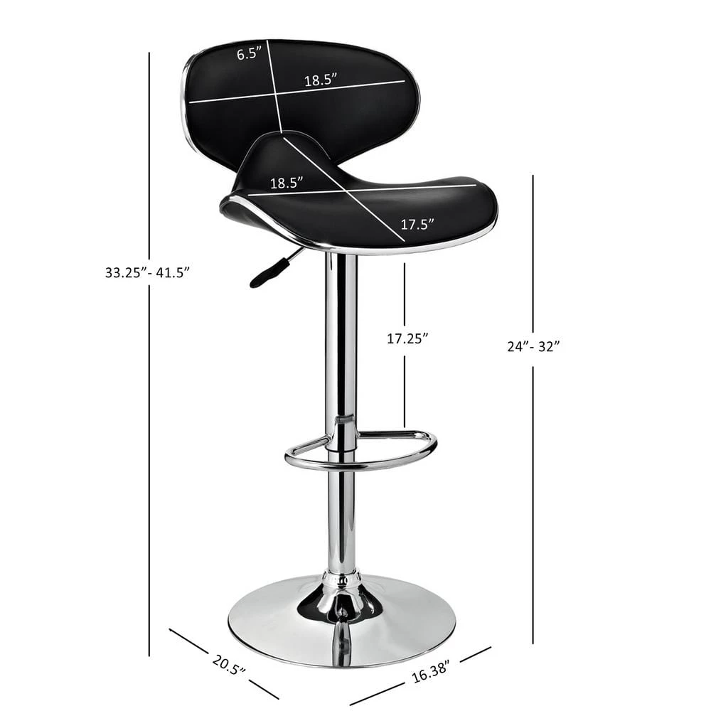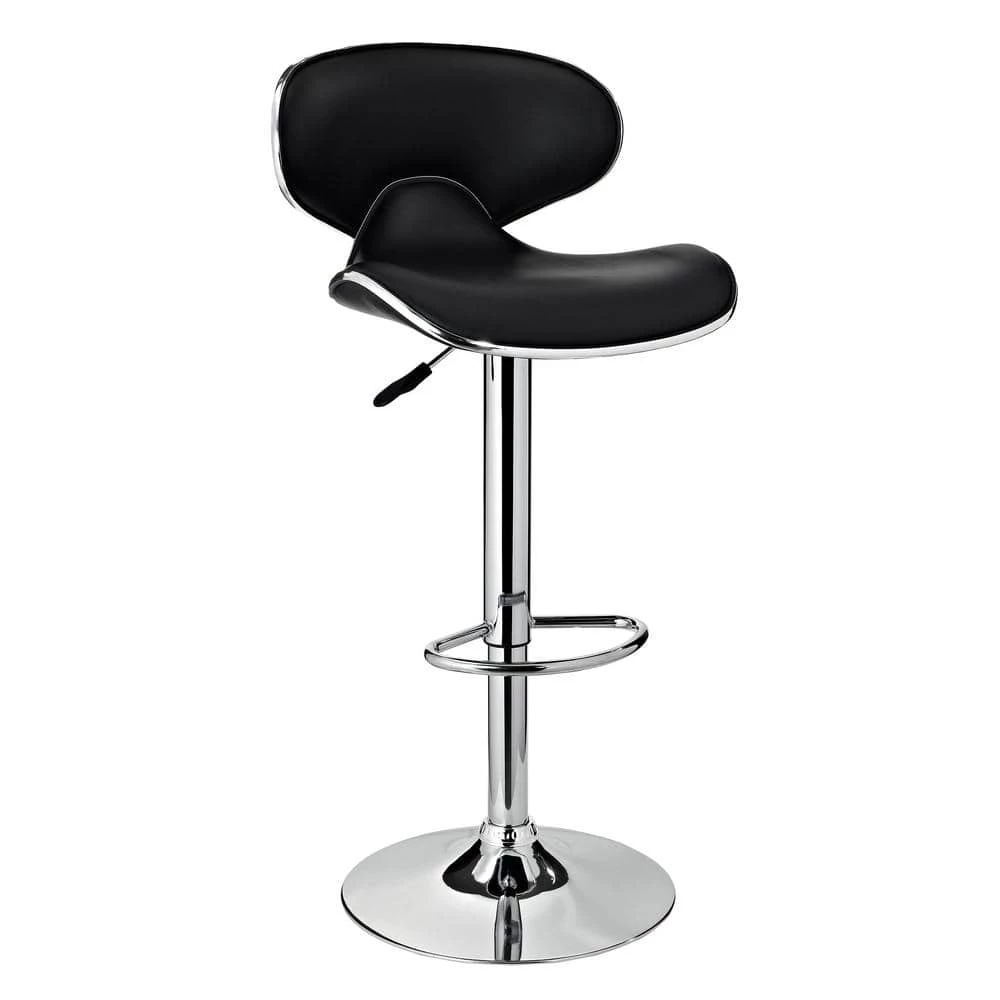 The Black Bar Stool is a unique, contemporary addition to your home. The curved back faux leather seat, round sturdy footrest and height adjustable lever provides both style and function. An eye-catching, versatile black and chrome easily complements your home’s existing decor. Swivel seat adjusts with a gas-lift mechanism. 300 pound weight capacity. BIFMA 5.1 and EN1335 Standard testing passed and approved. Some assembly required.