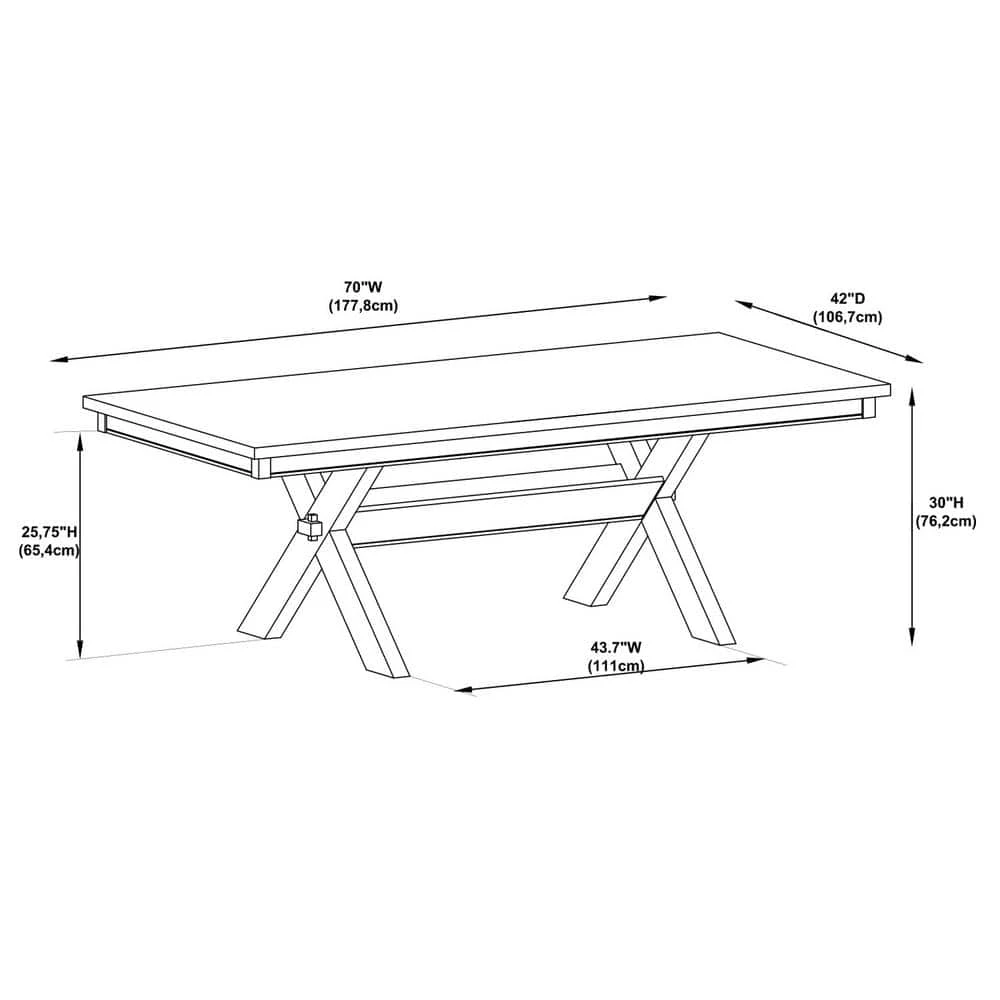 Outfit your dining scene with the perfect family piece, courtesy of this clean-lined dining set. Set overtop an x-framed base, its spacious tabletop offers ample food and elbow room to accommodate both large and small dinners. Its durable wood, MDF and veneer construction is finished in a classic, grey oak stain that delivers a traditional farmhouse feel. Round out this scene with 5 full-back dining chairs, constructed with a plush seat to make even your guests feel at home.