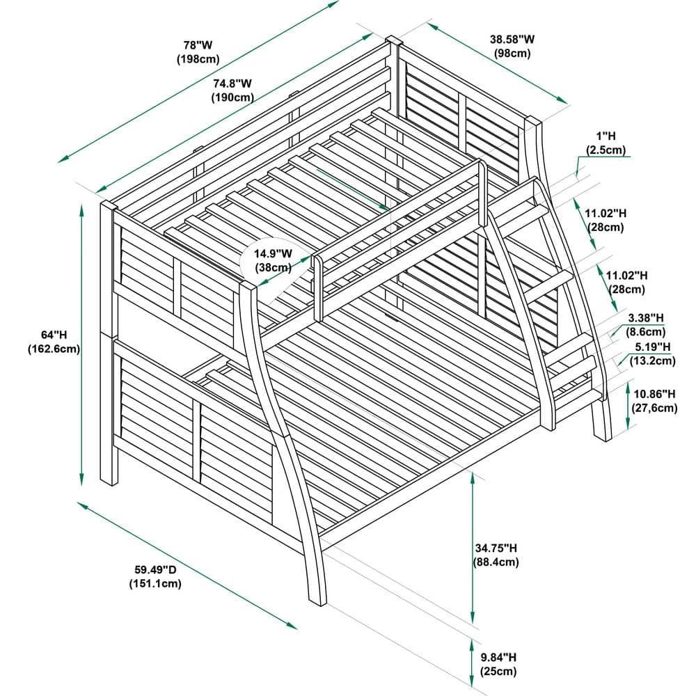 - Twin over full bunk bed