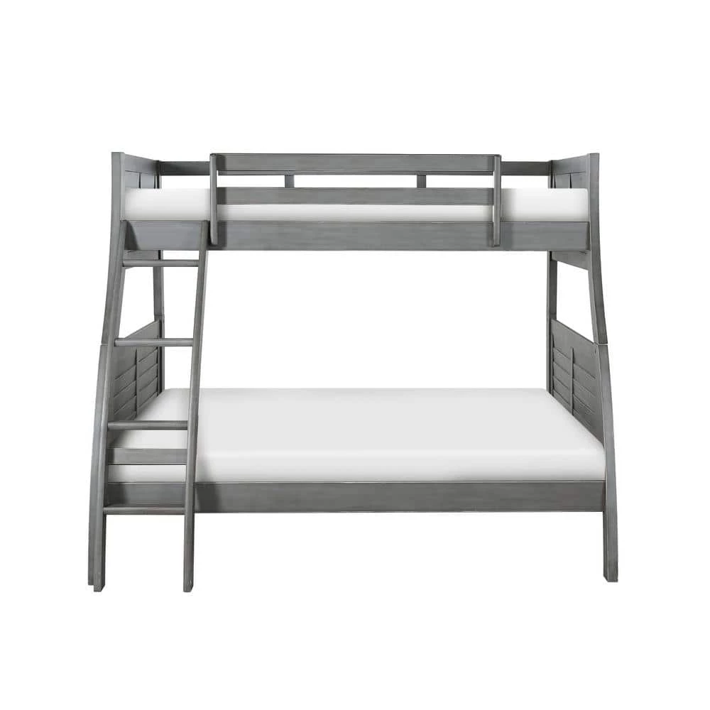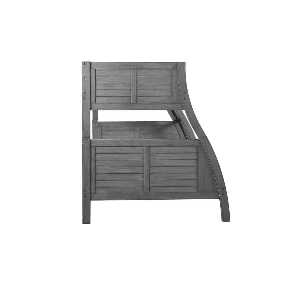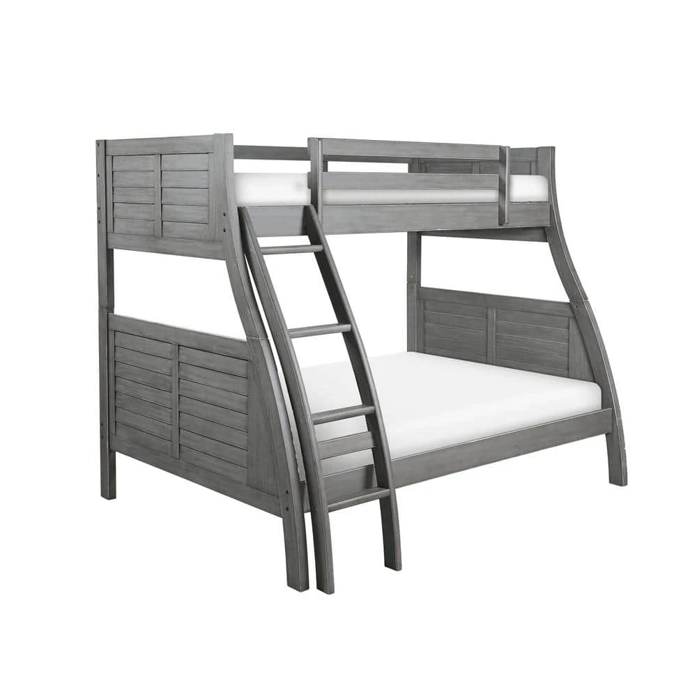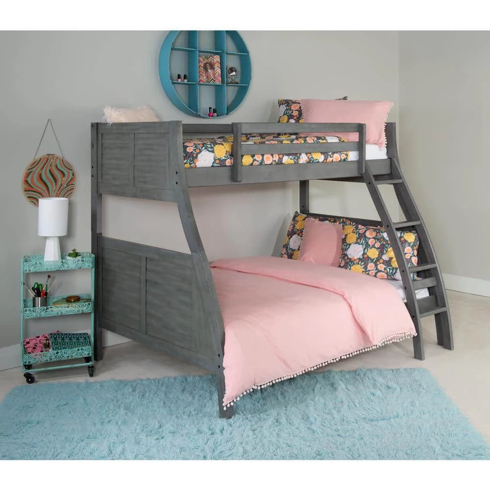 This stylish take on a classic frame, The Allen Bunkbed is the perfect choice for your bedroom. The twin over full bunk bed provides ample sleep space, with the added support of a sturdy 13-piece roll slat system. The grey finish with unique hand-rubbed black glaze highlights the curved front and louvered sides. Some assembly required.