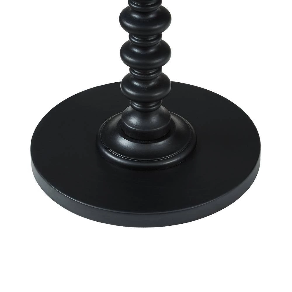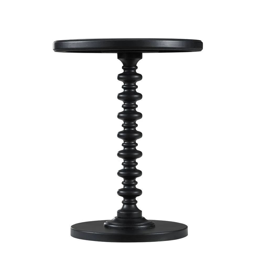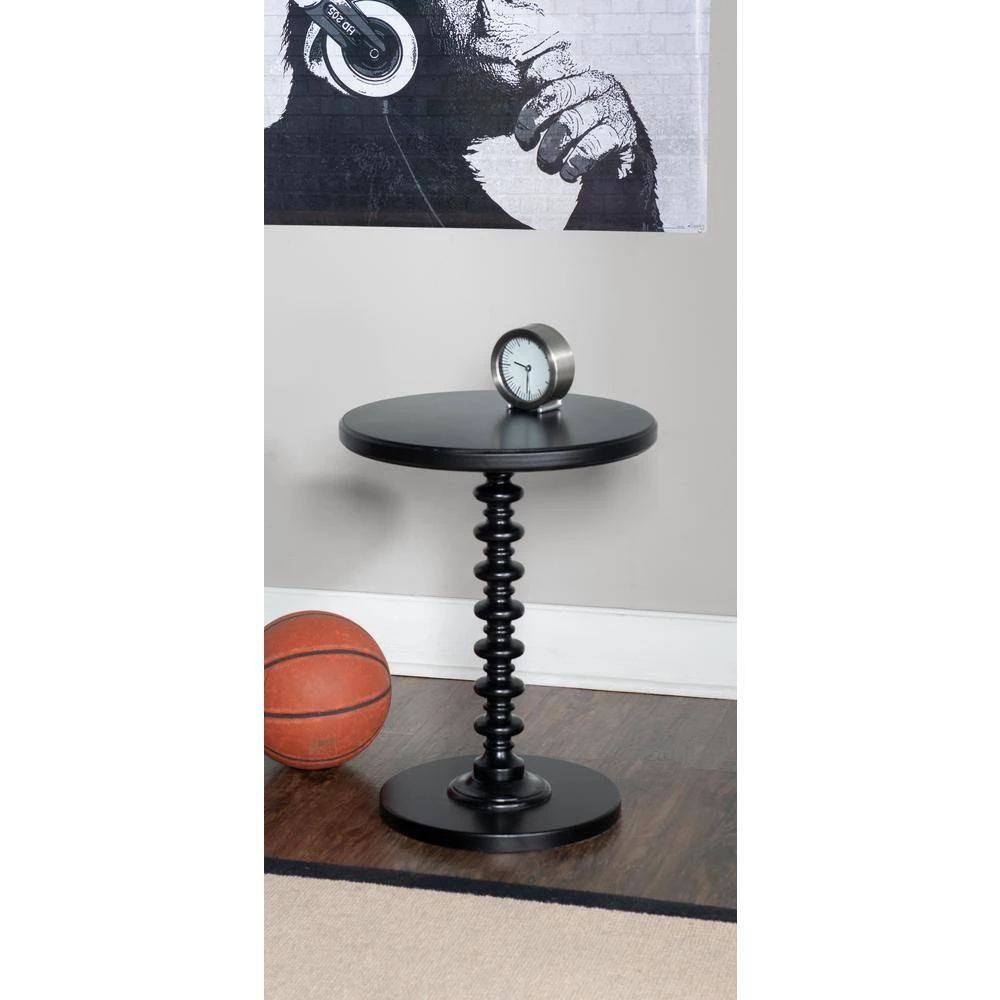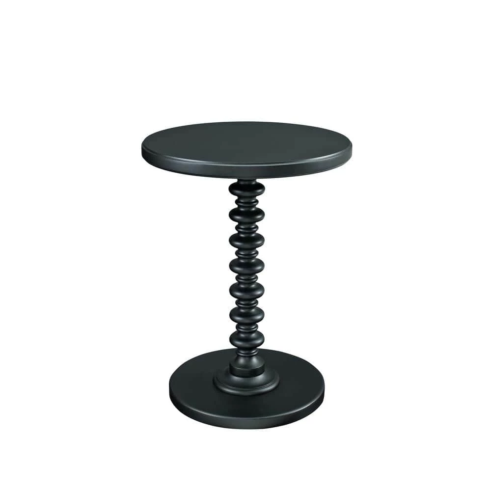 The Spectrum Black Table features a bright, smooth finish and a spindle circular base. Its round edges and classic style will add charm to any space. Sized perfectly to sit next to your favorite chair, the table gives a fun pop of color to any room.