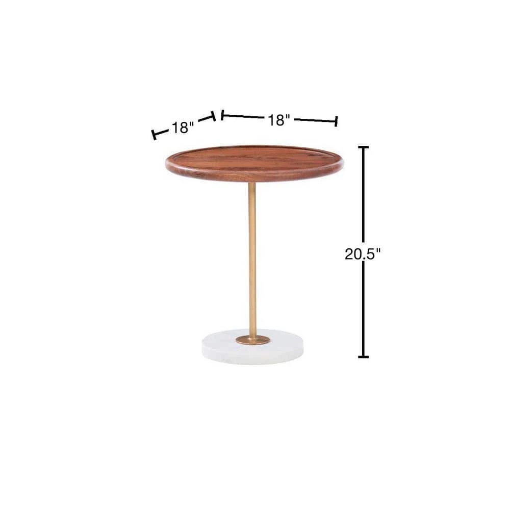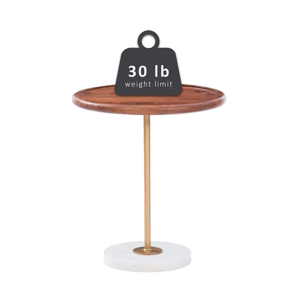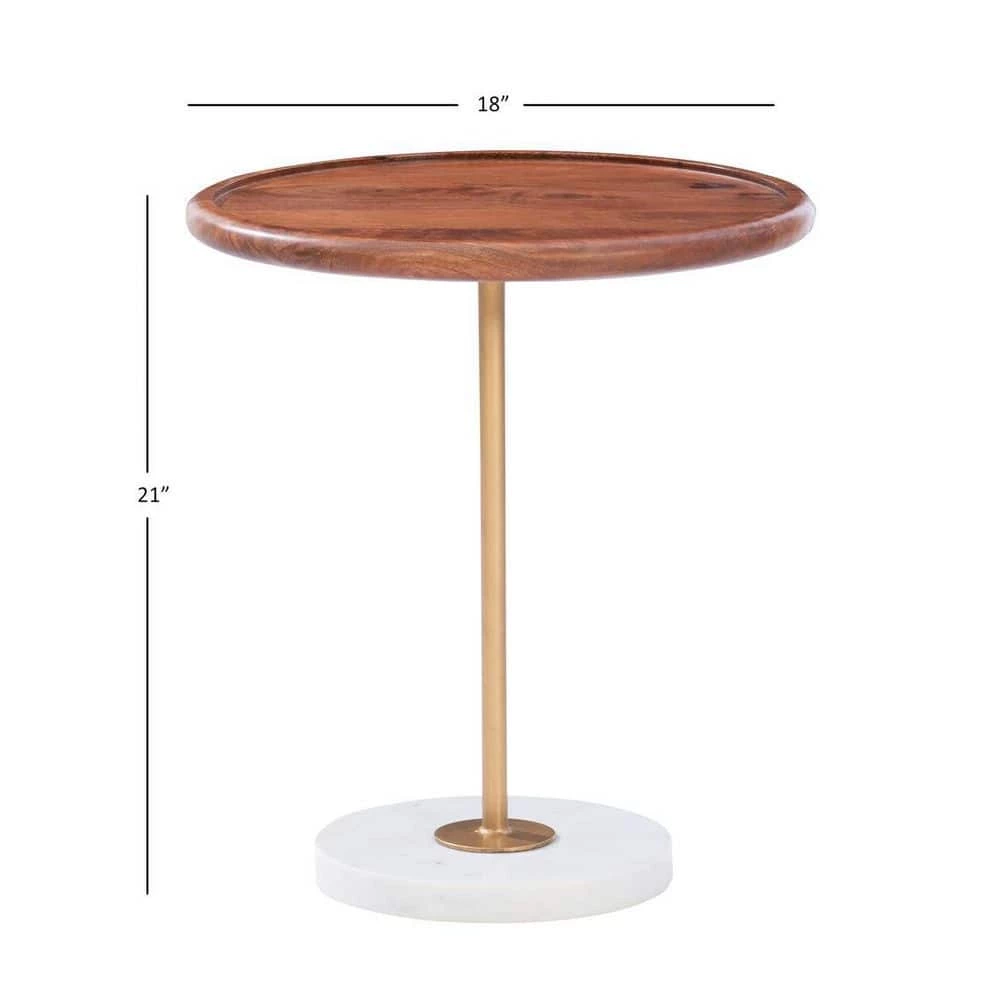 Charming and refined, this side table can do it all. This Bonnie 18 in. Natural 21 in. Circular Mango Wood End Table with Stone Base looks lovely sitting solo or set alongside a sofa. The clean design allows surrounding accents to breathe, while the rich earthy tone completes the look. An 18 in. round solid wood top provides a perfect stage for drinks, candy dishes, framed photos and beyond. A solid white marble base ensures a stable surface to keep your belongings safe. The compact size allows the table to be effortlessly placed where it’s needed most.
