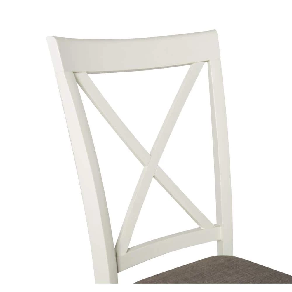 The Bridgton Side Chairs are a beautiful complement to the Bridgton Dining Table. The X-back chairs have a comfortable upholstered seat with a grey menswear inspired fabric. Some assembly required.