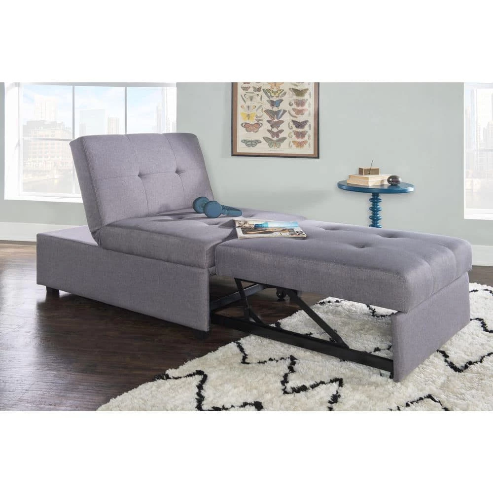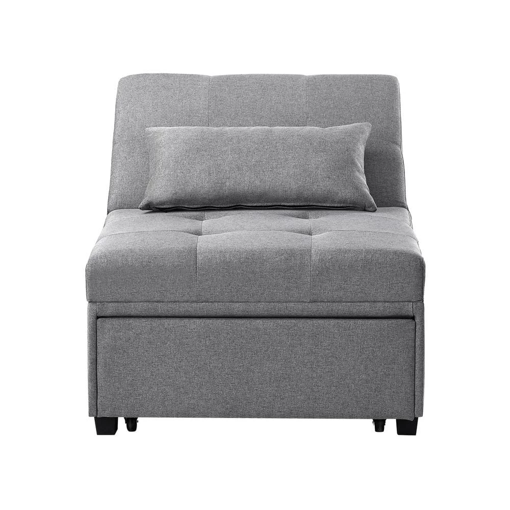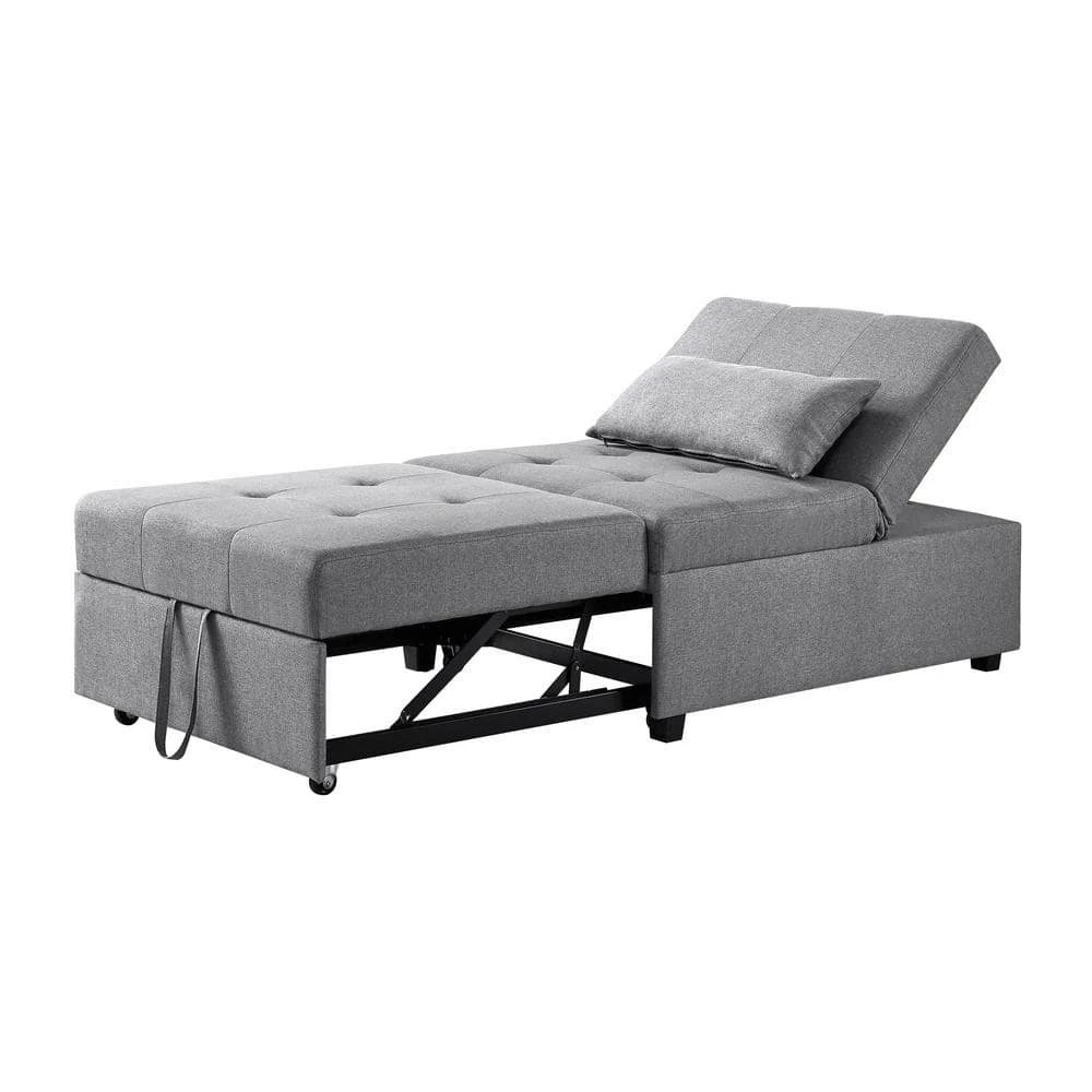 Enjoy a contemporary look that brings comfort and style to your home with this convertible Brooks Sofa Bed inGrey. Designed to adapt easily to any lifestyle, this unit transforms from a single armless chair into a 44″ large ottoman or a 75″ twin-size bed! Equipped with a cozy roll pillow, its tufted fabric and wooden legs provide extra support whether you’re watching the game or indulging in a nap. Place this stylish sleeper in your next apartment to conserve space and accommodate guests. Fully Assembled.