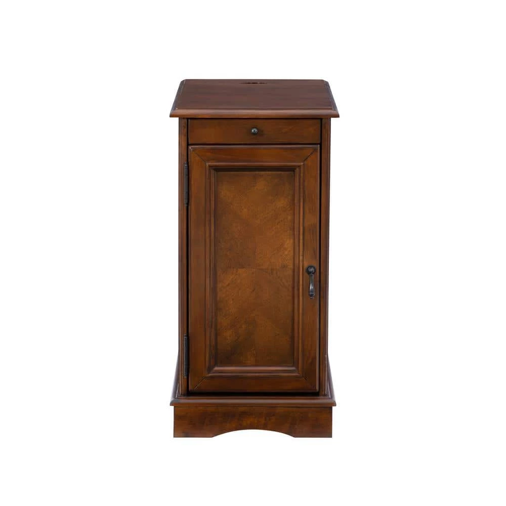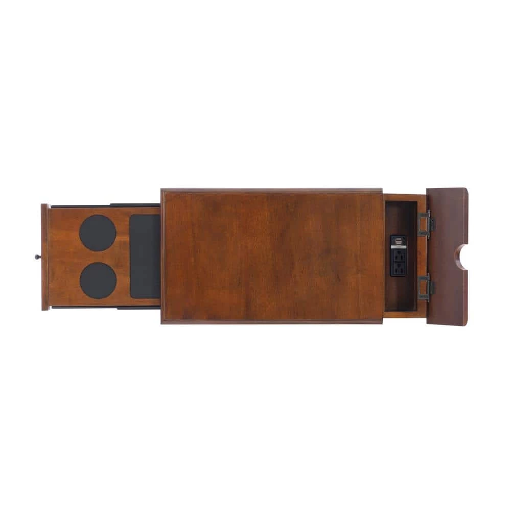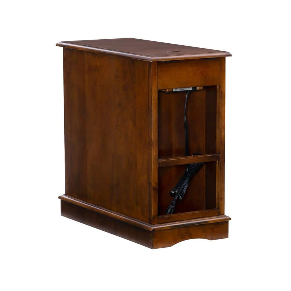 The Butte 24 in. L White 24 in. H Rectangle Wood Flip-Top Accent Table with 3 Meter Long USB cord perfectly pairs style and technology in this convenient end table. Sized to fit next to your sofa or your favorite chair, the table has hidden storage behind the cabinet door, and a pull out tray with coasters for your drinks and a spot for your phone or remote. A flip-up top opens to reveal a USB and electrical charging station. Comes in an array of colors to fit any decor – finishes in white, black, aqua, red, or hazelnut.