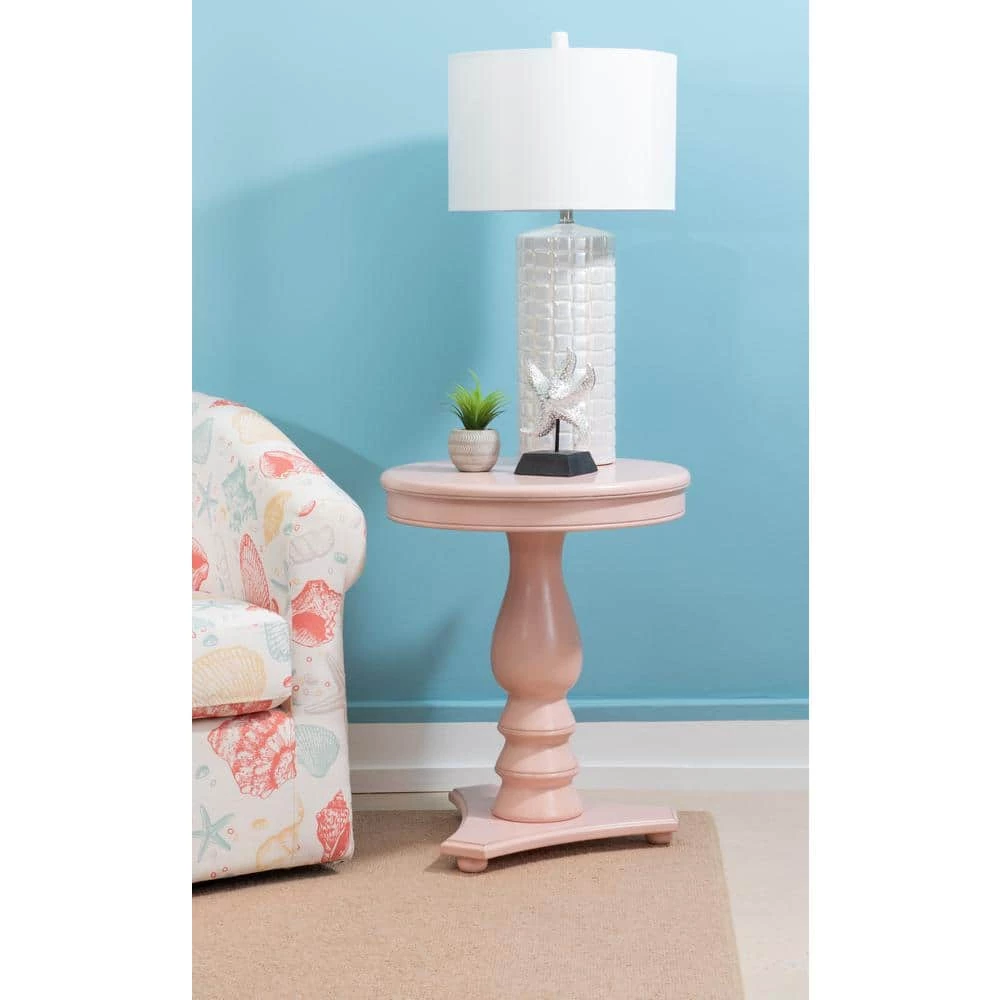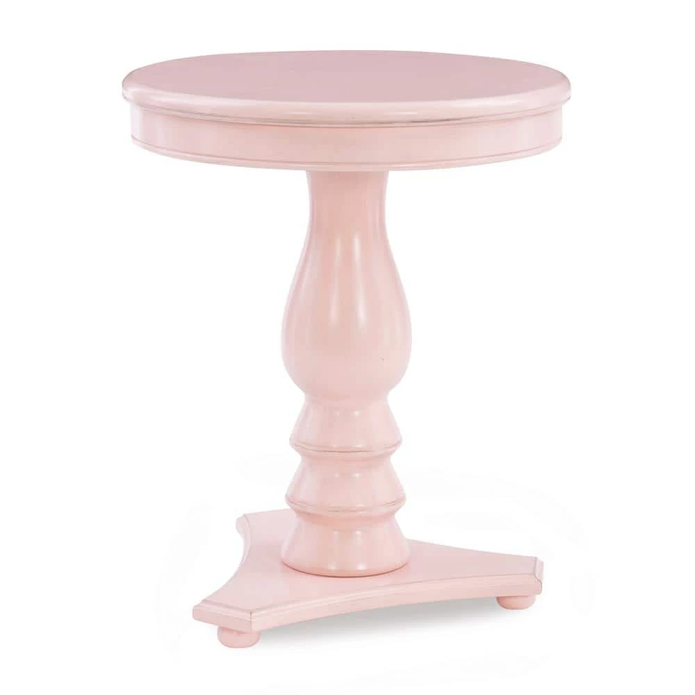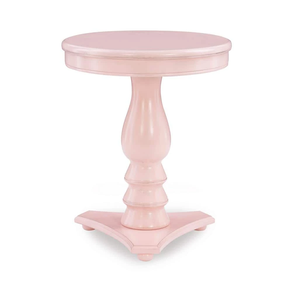 This exquisitely elegant Cati Pink Accent Side table will gracefully blend into any room in your home. The beautiful, turned wood pedestal and triangular base adds a hint of flair. Pair with your favorite arm chairs for a cozy and comfortable room, or place bedside as a stunning nightstand. Available in an assortment of colors and finishes.