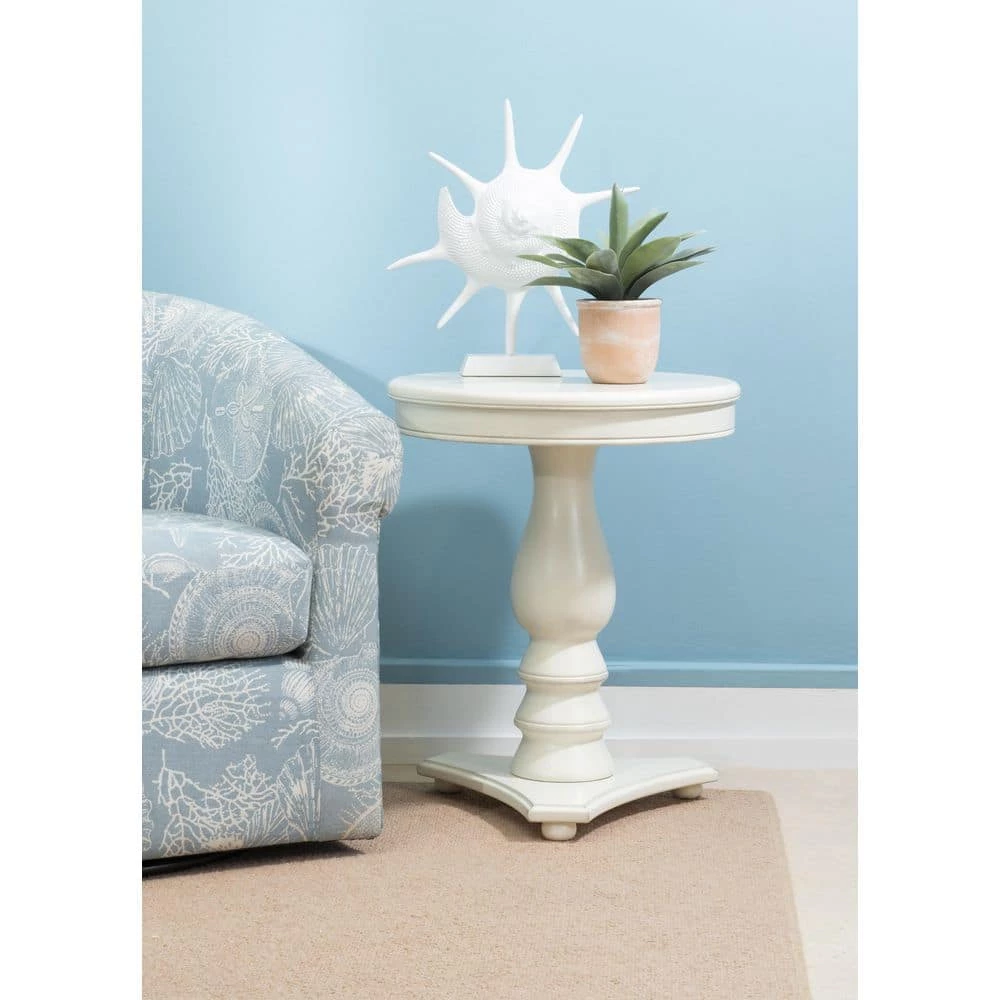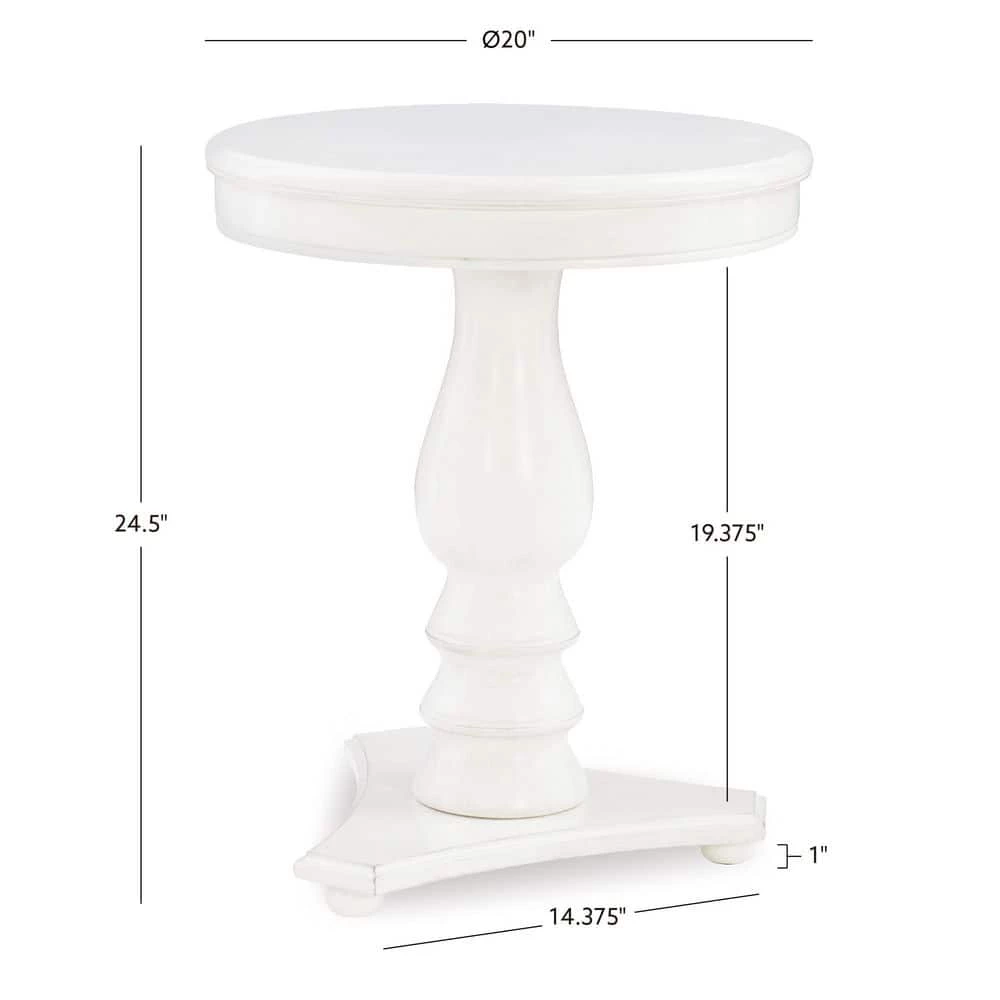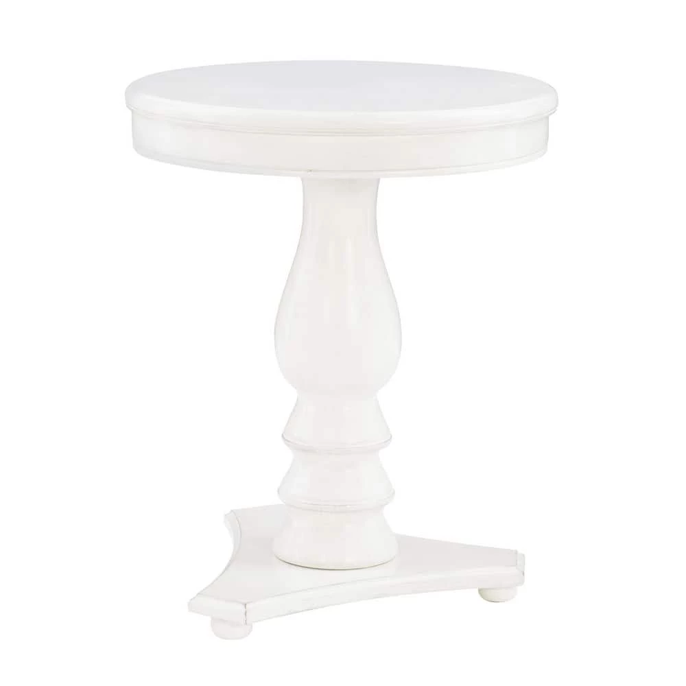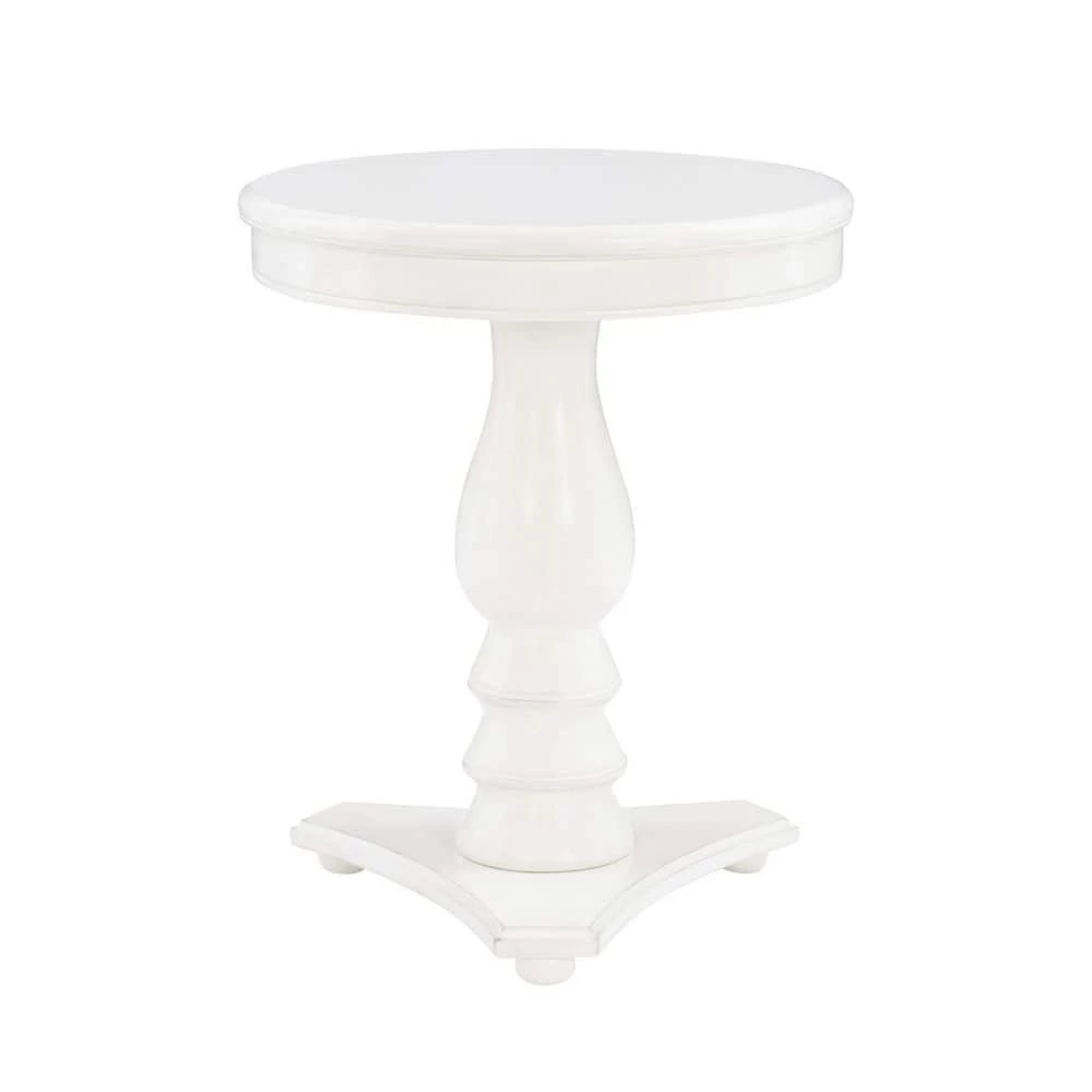 This exquisitely elegant Cati White Accent Side table will gracefully blend into any room in your home. The beautiful, turned wood pedestal and triangular base adds a hint of flair. Pair with your favorite arm chairs for a cozy and comfortable room, or place bedside as a stunning nightstand. Available in an assortment of colors and finishes.
