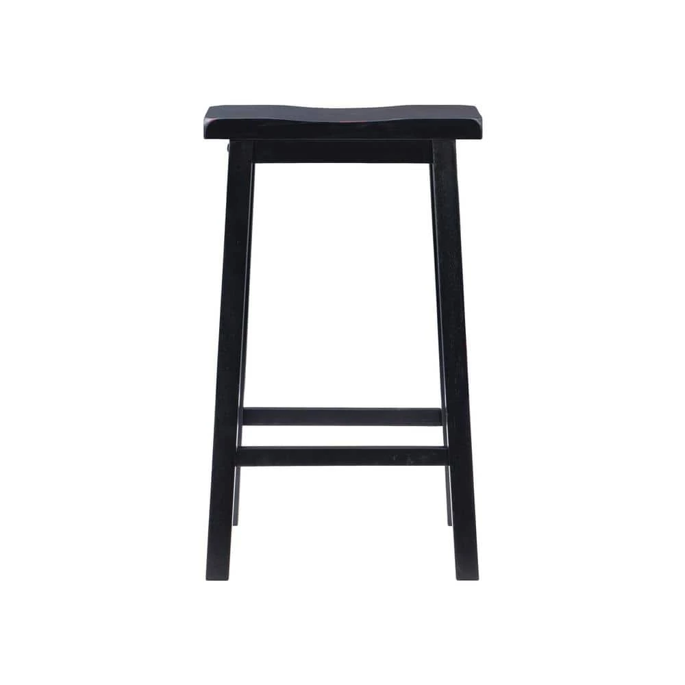 Comfortable seating for meal occasions and a place for guests to relax, this Darby Black Barstool is a stylish value. A backless design, it can go wherever needed in a home. The sturdy Rubberwood stool has a 275 lb. weight capacity and 29″ high seat that fits with bars and bar height counters and tables around 40″ to 42″ high. The fashionable Antique Black finish means it can enhance most room decor, and braces support the fashionably angled legs, also acting as footrests.