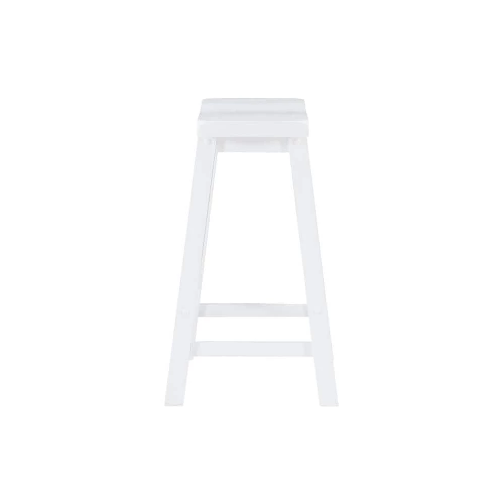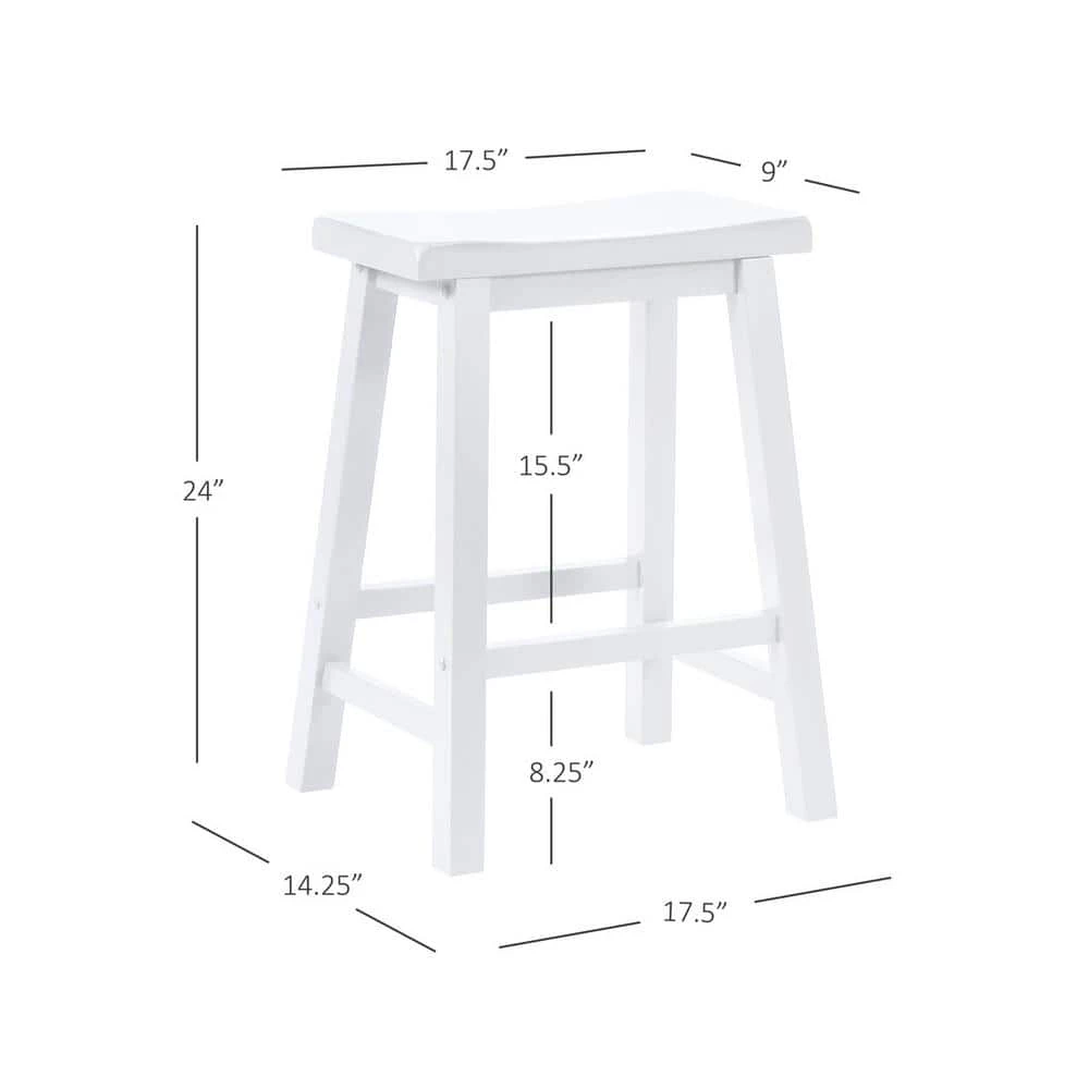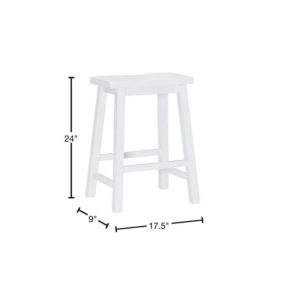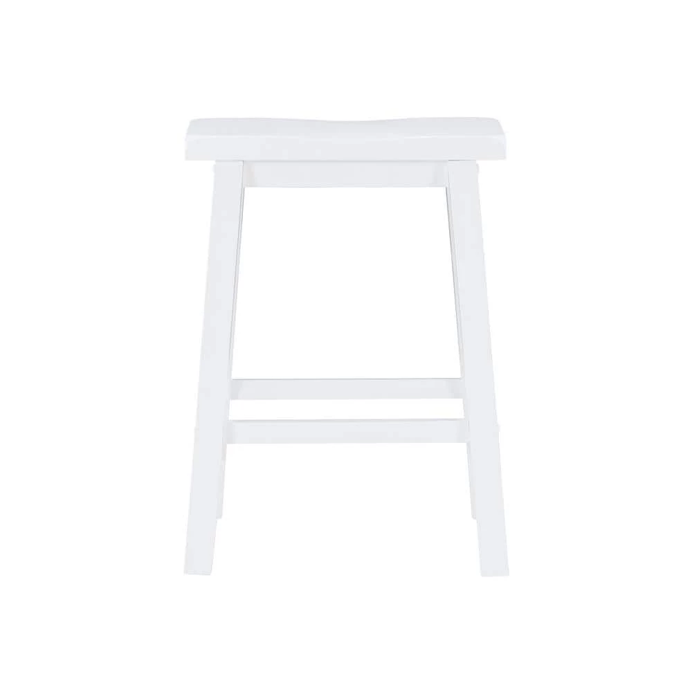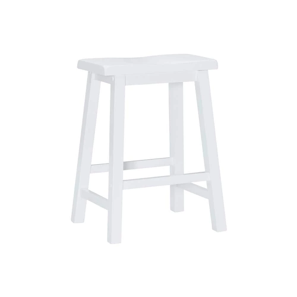 A comfortable, sturdy saddle seat design, this Darby White 24 in. Counter Stool is light, bright and stylish with a Pure White finish and smart angled legs. Braces provide the legs with footrests and extra strength, which is among the reasons the Rubberwood stool has a 275 lb. weight capacity. A 24 in. high seat means it suits counters and counter height tables from around 34 in. to 36 in. The straightforward backless design means this robust value barstool can provide comfortable seating for residents or guests throughout a home.