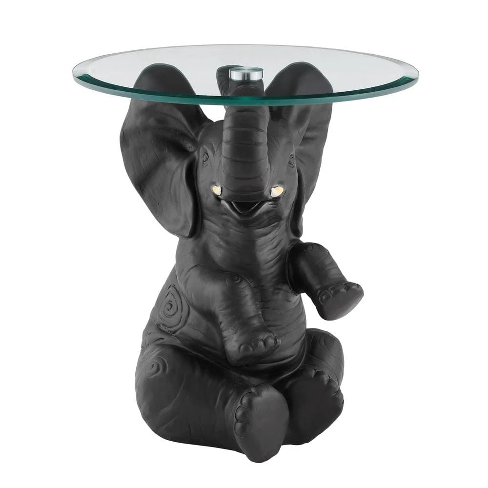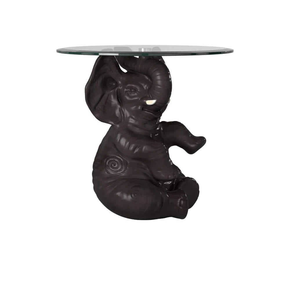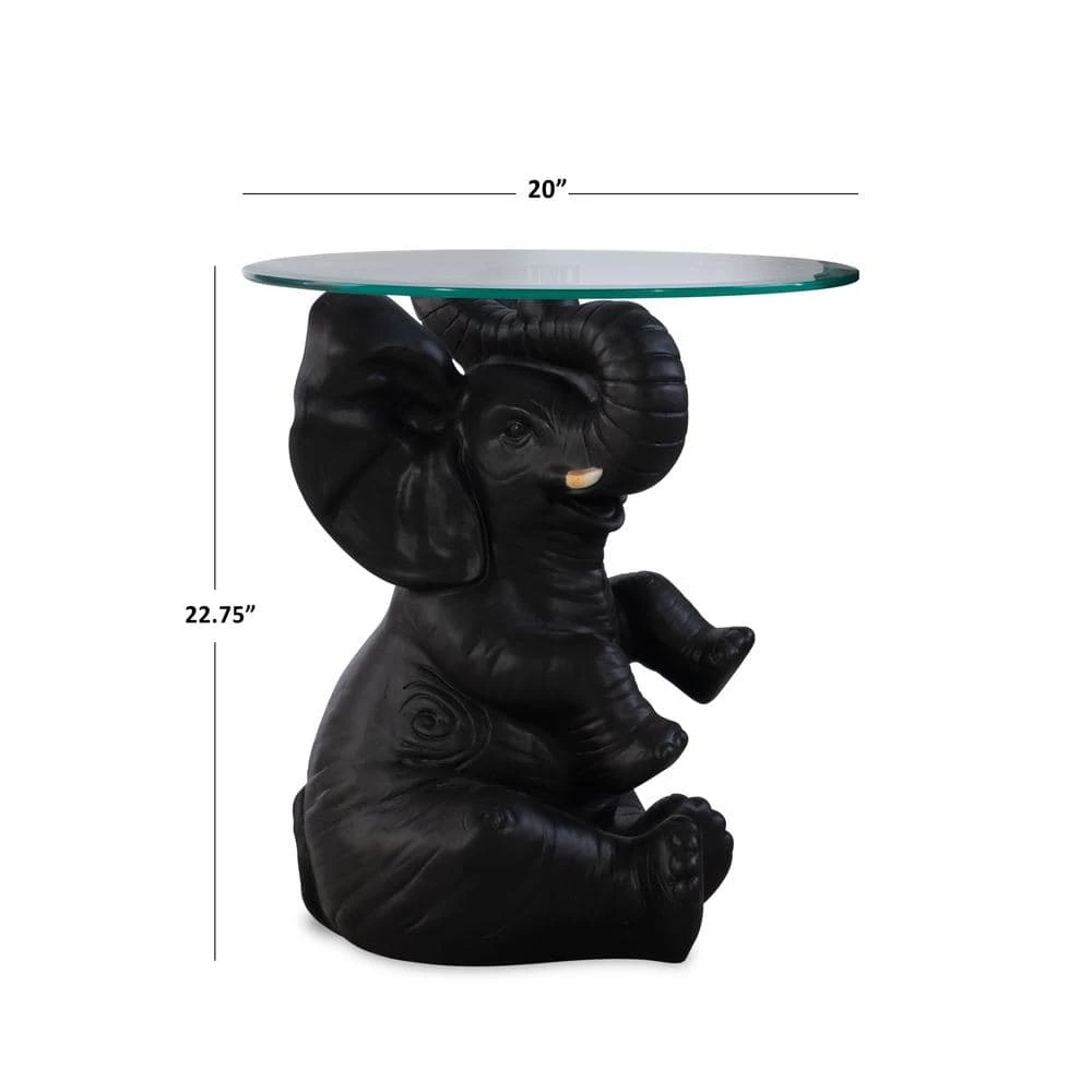 Bring worldly whimsy to your living area or bedroom with the Ehren Elephant Side Table. He’s a charmer with tusk and ears raised to balance a glass tabletop that afford space for a lamp and drinks. Features a hand-painted dark grey finish and is posed in a playful, engaging manner to create a fun addition to your decor.