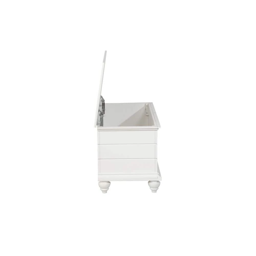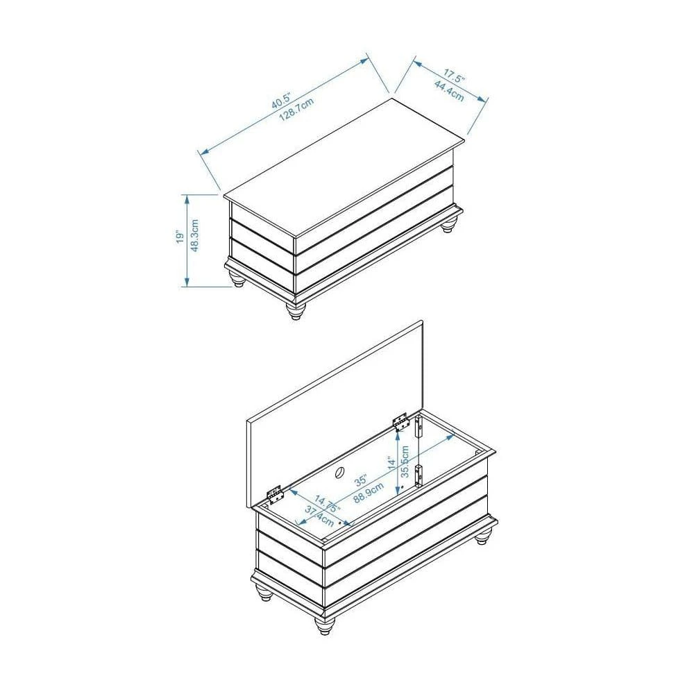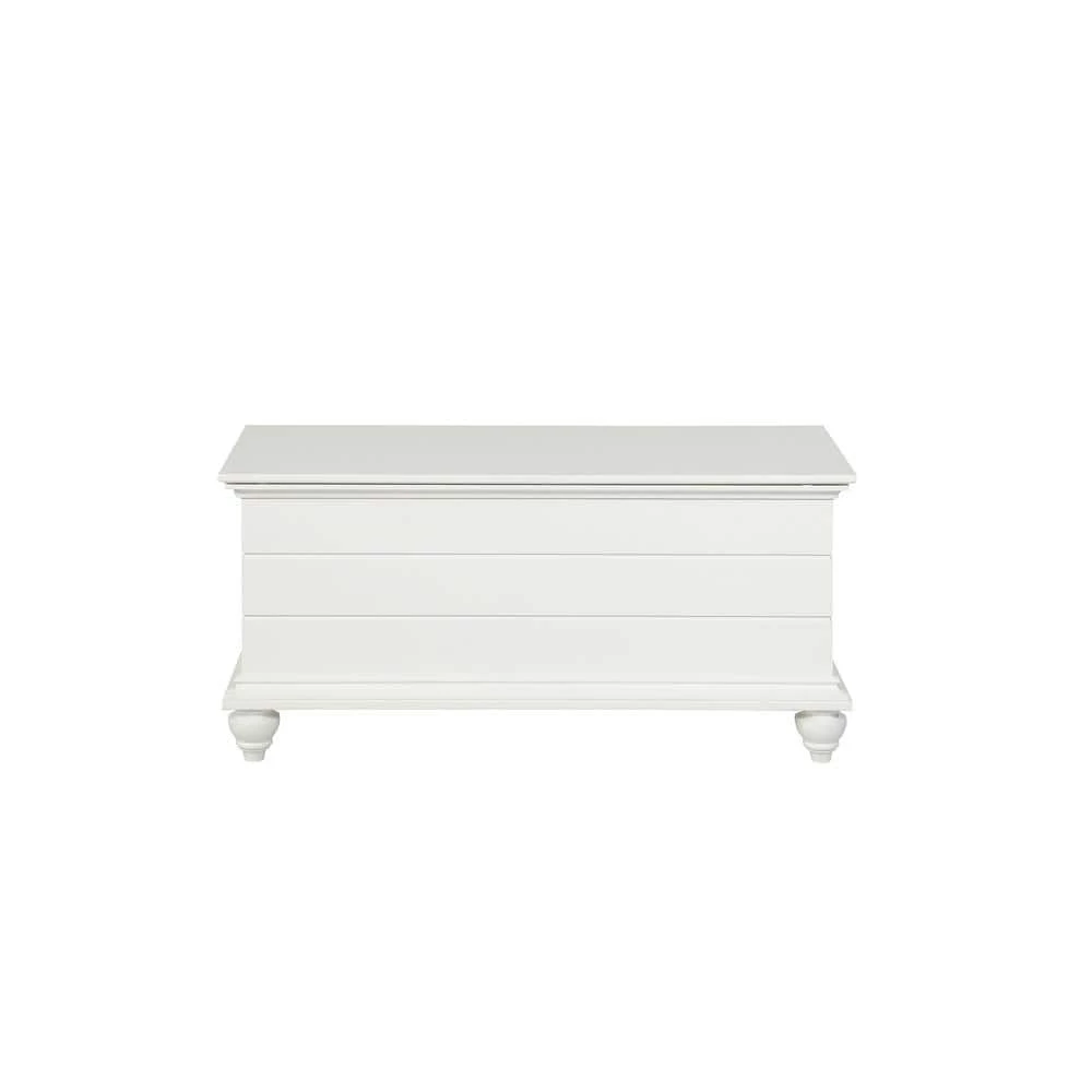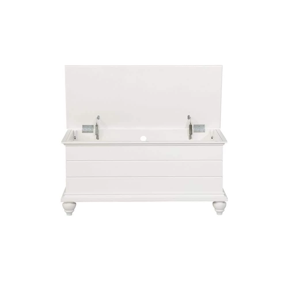An updated classic, the Ellsworth Cedar Chest is the perfect addition to your home decor. Blending style and function with faux plank routed details, turned legs, decorative molding, and a beautiful white finish. The top opens wide to reveal ample storage space and is cedar lined. Safety is a priority with child safe hinges and breath holes. Some assembly required.