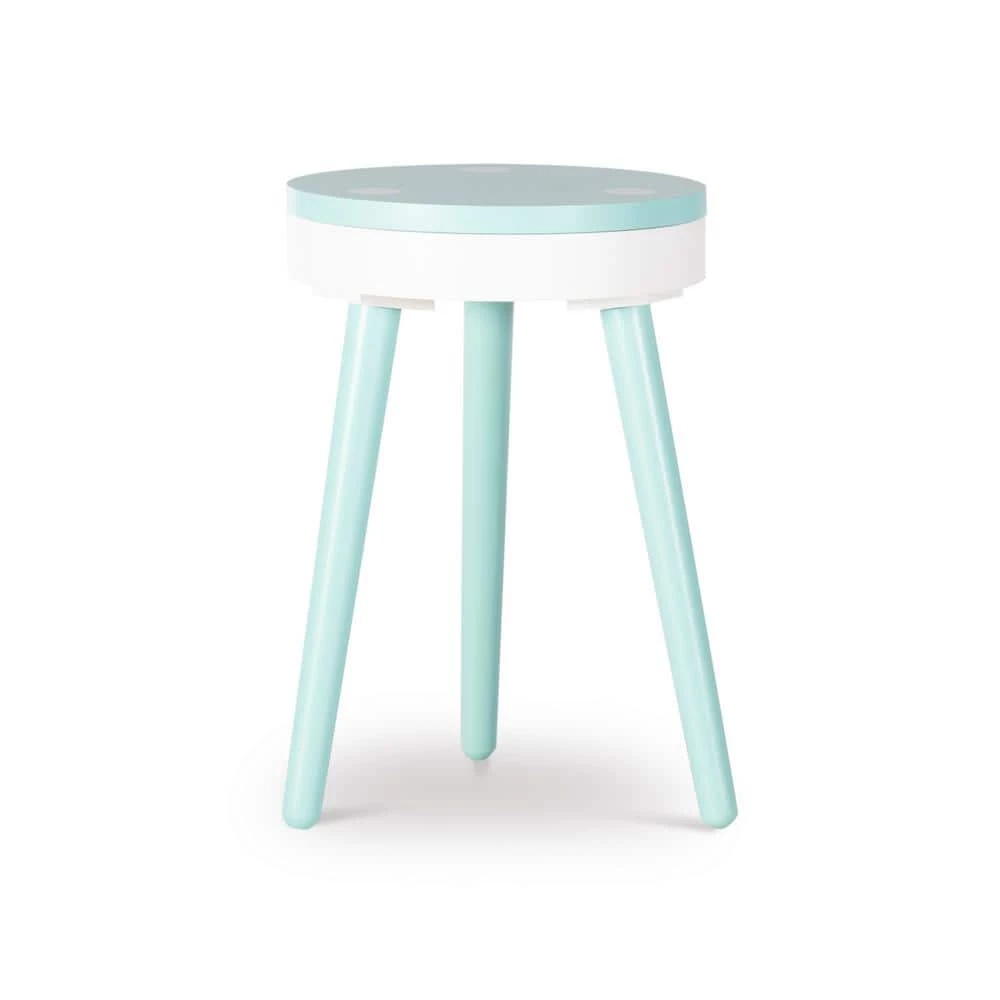 With a playful and modern design, the Fannin Aqua side Table will be the perfect introduction to your child’s bedroom or play area. The fun, aqua table top and legs combined with the pure white table top base add whimsy to any decor. The table top lifts for extra storage. Kids can store small toys or mommy and daddy can hide remotes with style.