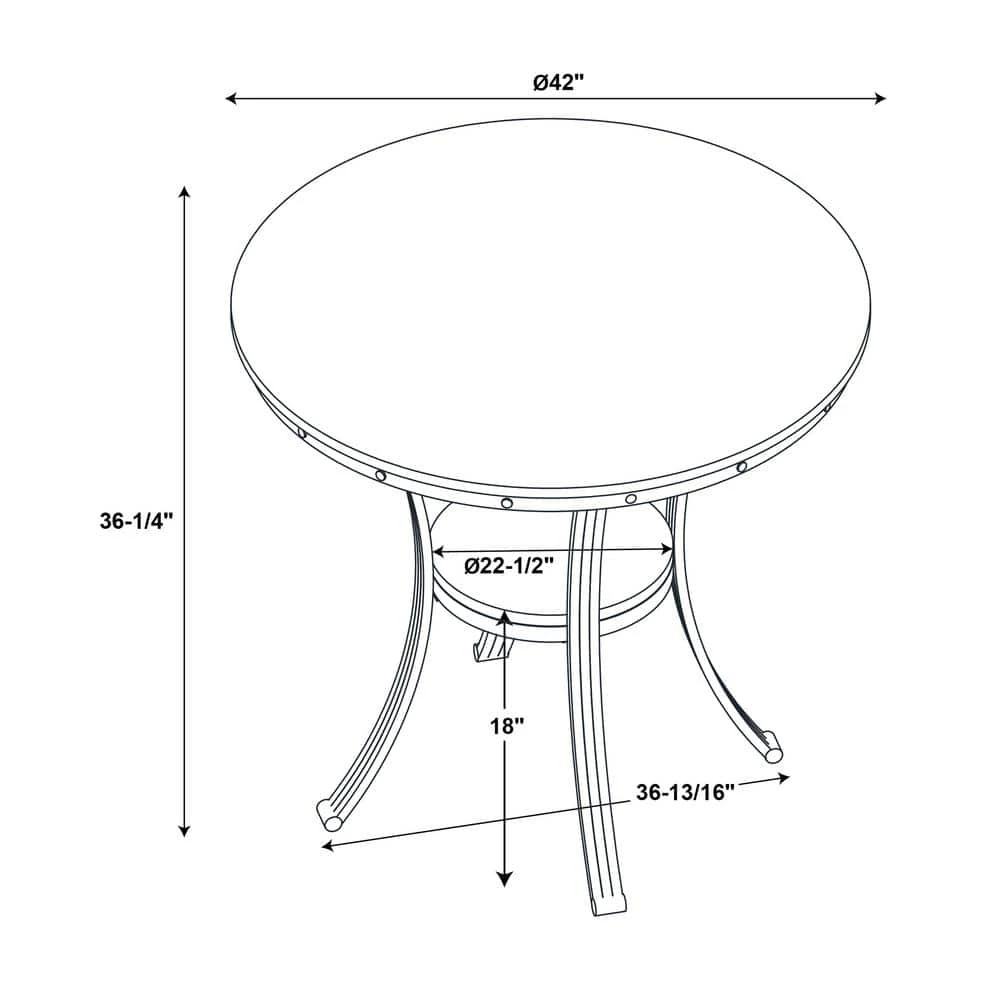 - 42 inches round top is 36.25 inches tall
