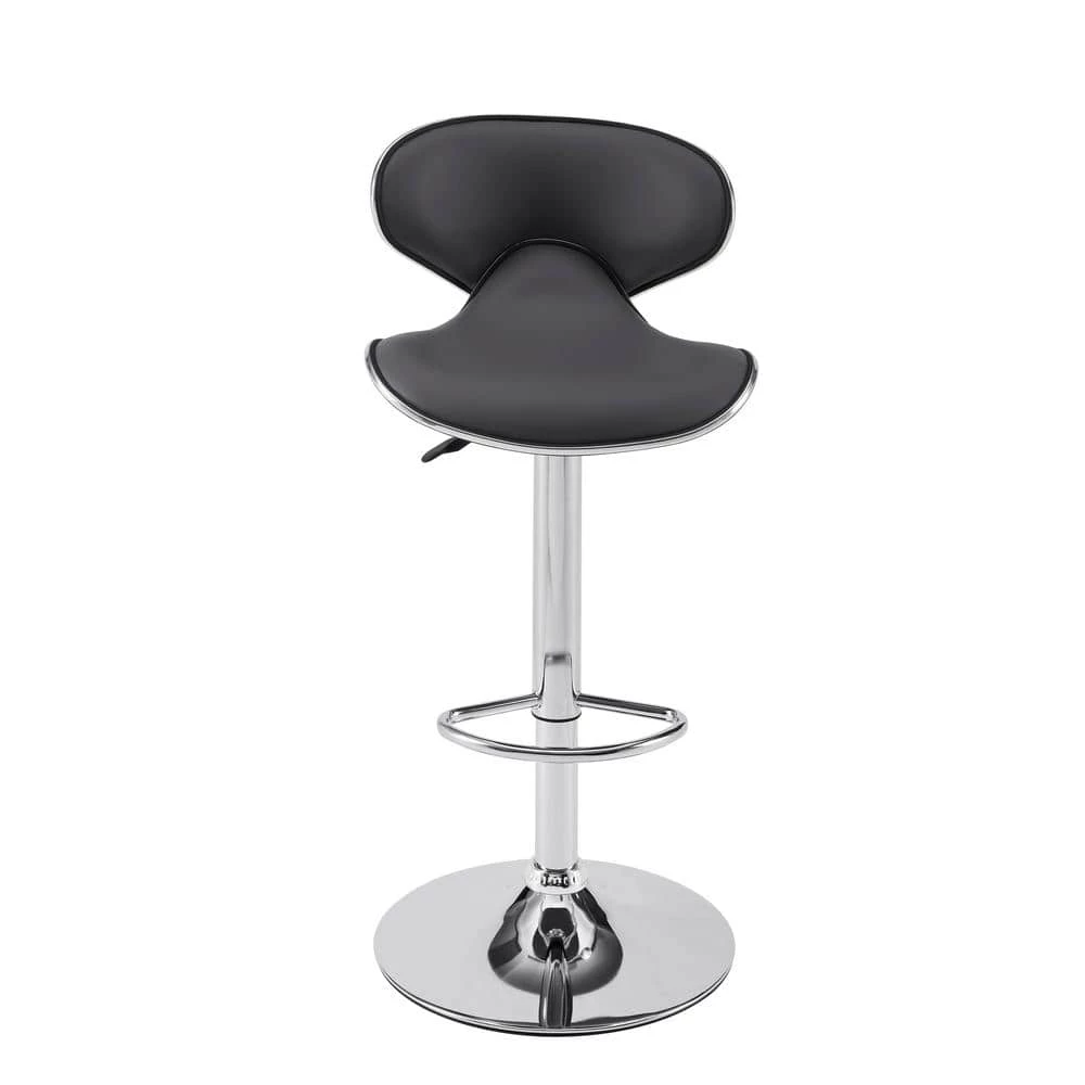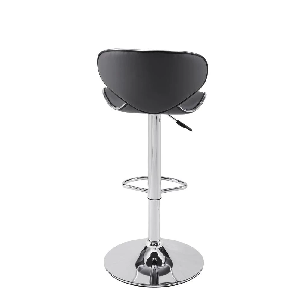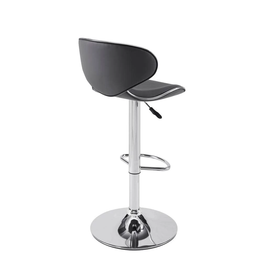 Sleek in every sense of the word. Sculpted in high gloss silver and grey faux leather. A statement piece as a stand alone stool or in a group accenting a modern gathering height table or contemporary kitchen counter. A smooth action gas lift provides a generous range of seating height. The comfortable seat swivels a full 360°. The foot rest maintains the same distance to the seat; now that is clever.