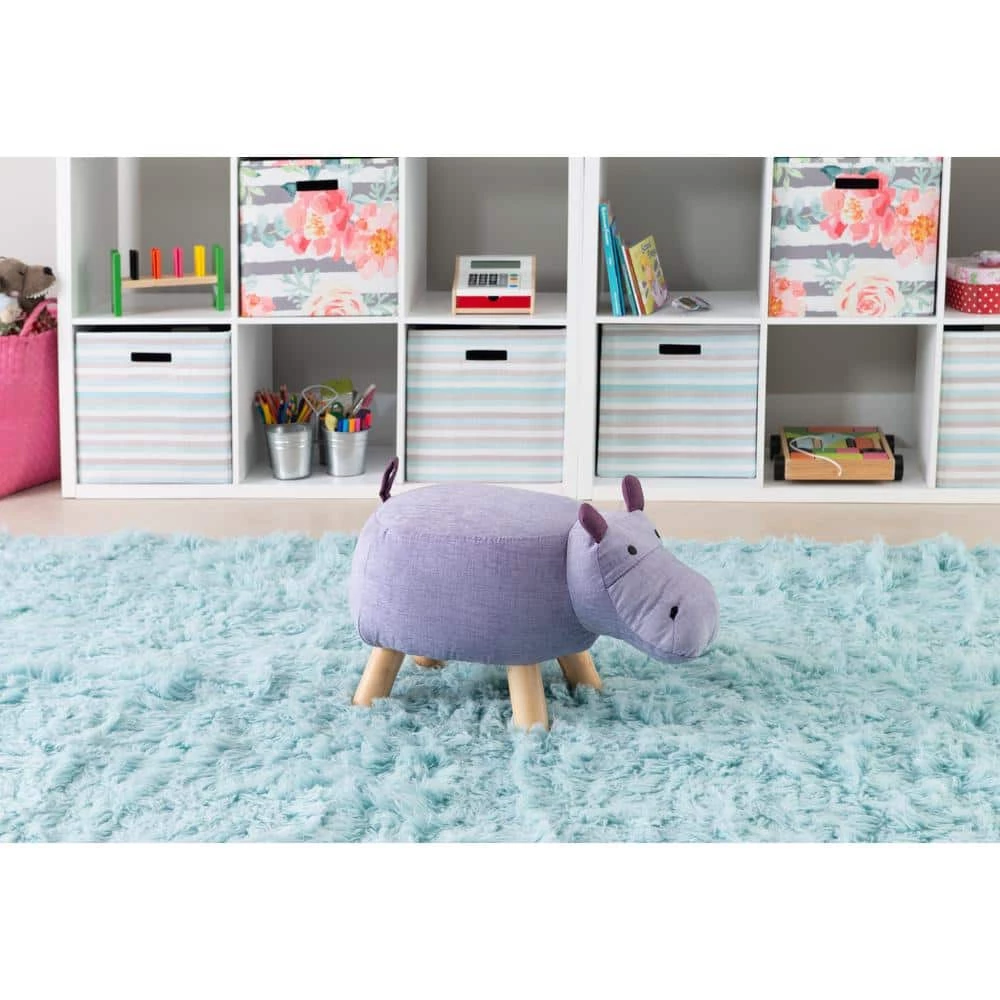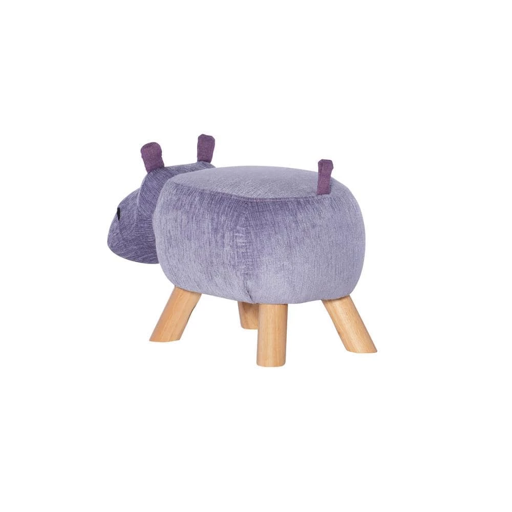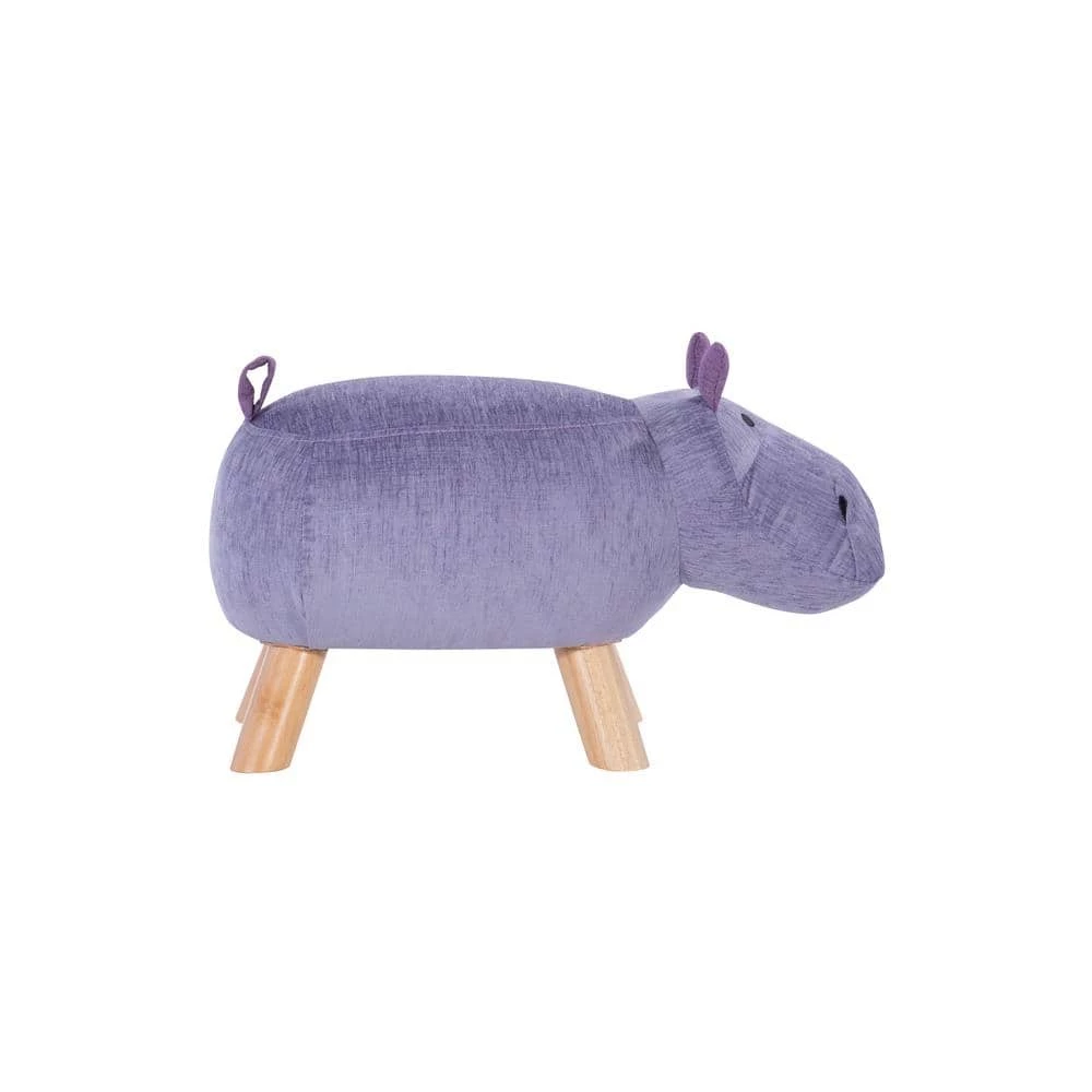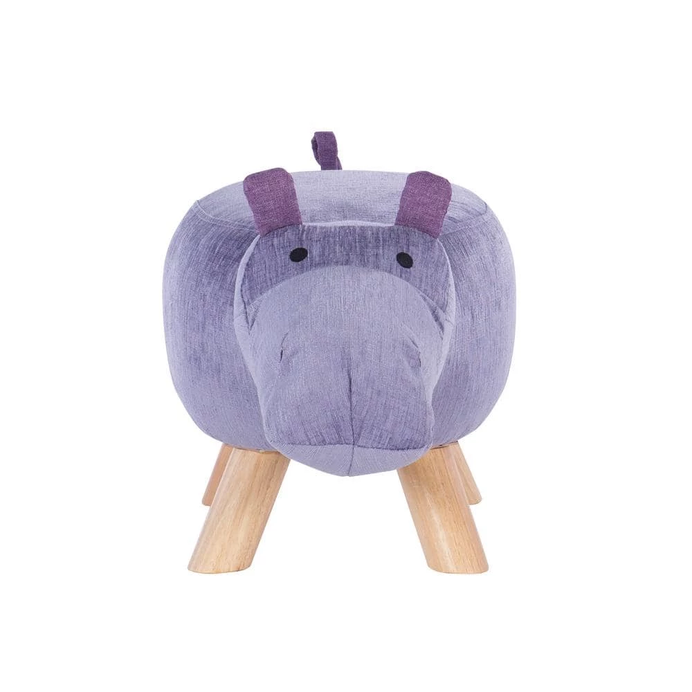 This adorable Hank Hippo stool in shades of purple is the sweetest addition to any nursery, bedroom or playroom. The natural finish on its simple angled legs allows focus to be centered on the happy hippo face. The Crosshatching fabric in 100% polyester is smooth to the touch and easy to spot clean. A unique and perfect gift for the hippopotamus lover in anyone!