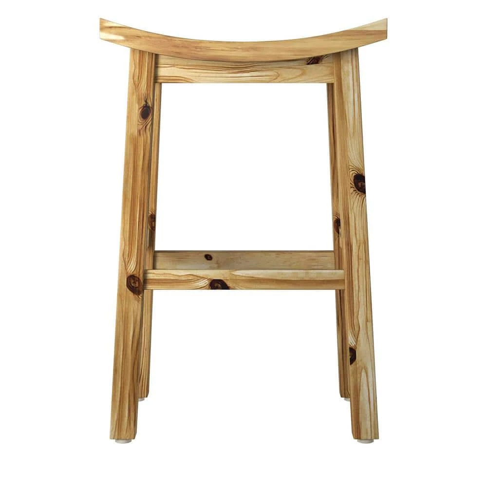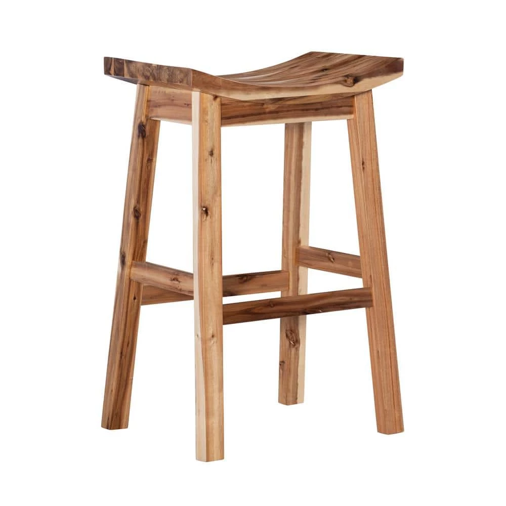 This Hunter Natural Saddle Bar Stool has clean lines, a comfortably curved seat and a sturdy, pleasing shape. Bolstered by durable solid Acacia wood, the stool has a extra thick, wide seating platform that rests on solid square legs and stretchers for added support. Leg braces add strength and act as footrests. A simple lacquer finish highlights the multi colored natural acacia wood. A transitional design, fits in with any home decor. The 30″ high seat suits bars and bar height tables and counters around 40″ to 42″ high.