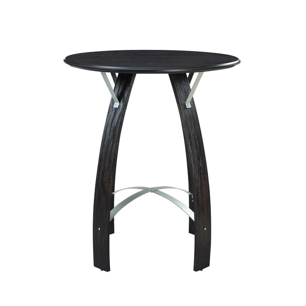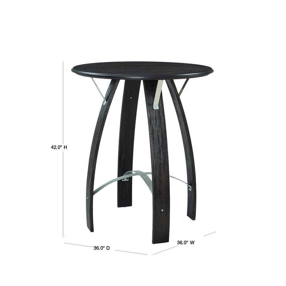 Perfect for cozy dining nooks and open concepts, the Johnson Pub Table brings industrial flair to any kitchen. Defined by a roomy 36 in. Dia surface overtop slightly curved legs, this dark pine-finished accent sits 42 in. tall to easily complement empty spaces. Galvanized metal embellishments add an unexpected touch as you enjoy casual meals and late night snacks with ease.