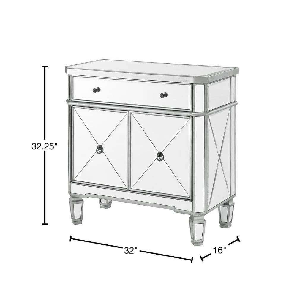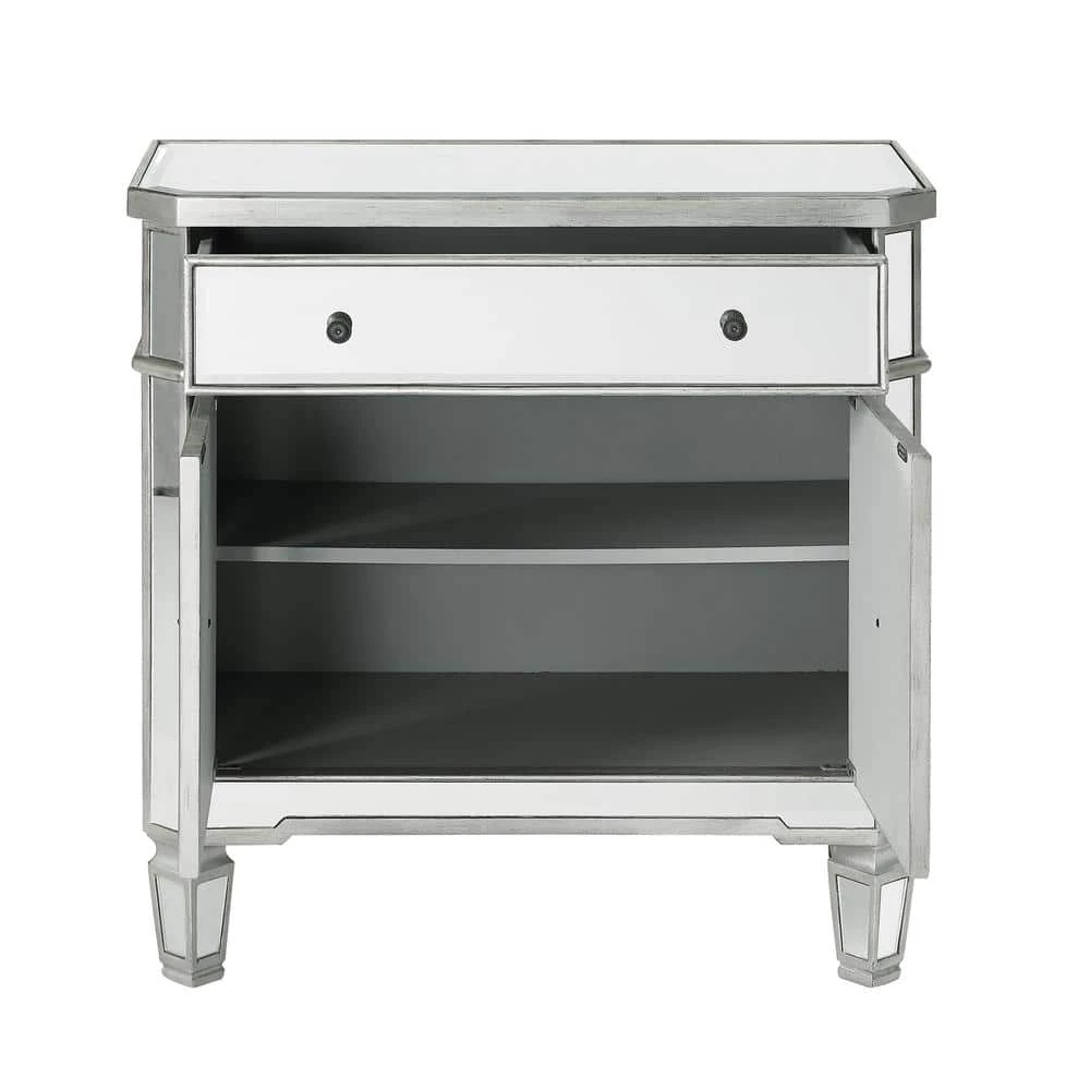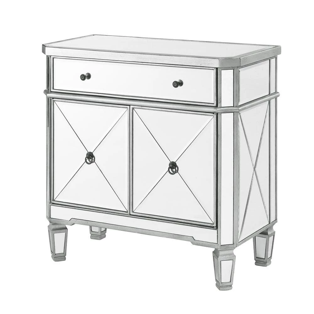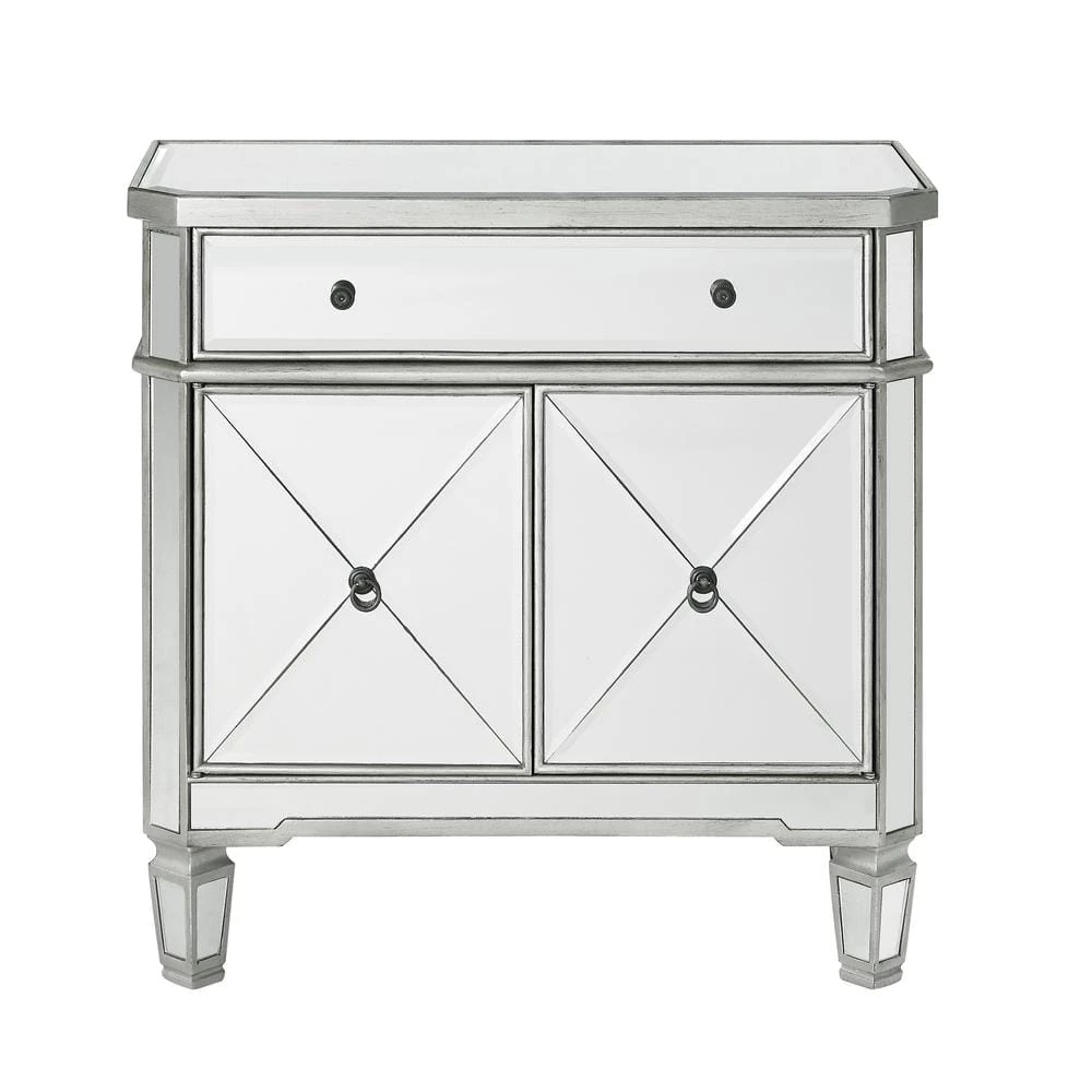 The Klein Console is the perfect compliment to your home. Featuring one drawer and two doors, this piece provides ample storage space with an interior, fixed shelving unit. The grey wood and mirror surfaces are highly adaptable to any homes decor. The unique details are eye catching, enduring, and are sure to enhance any space. Fully assembled.