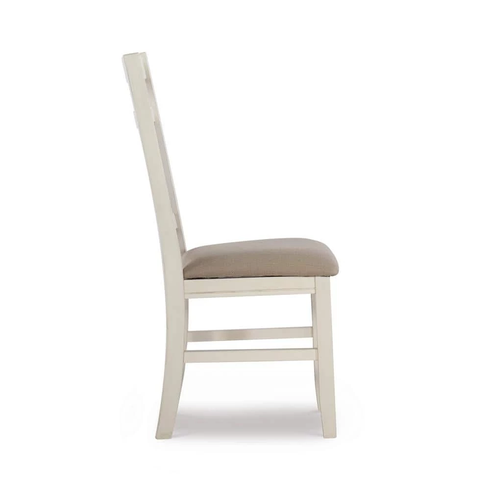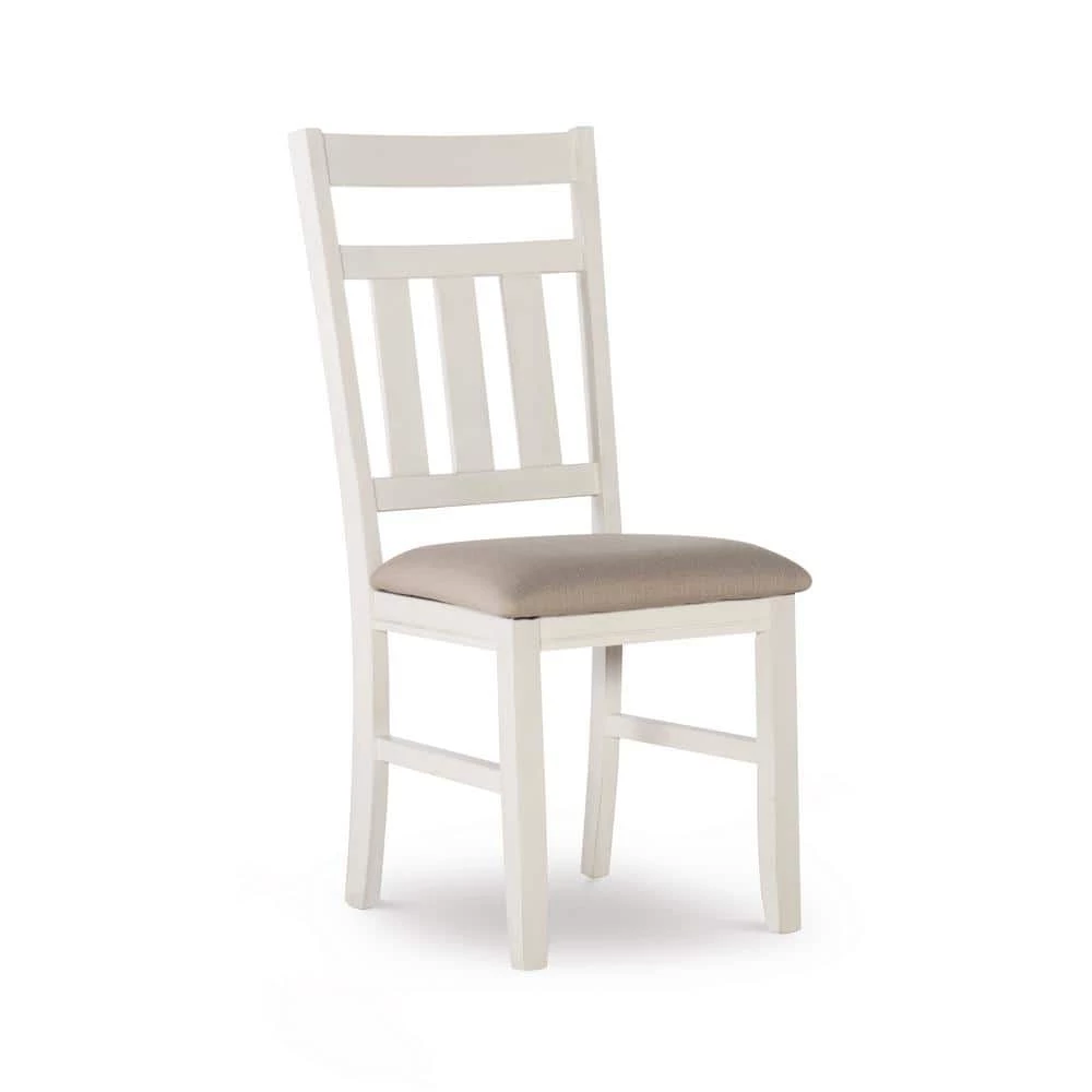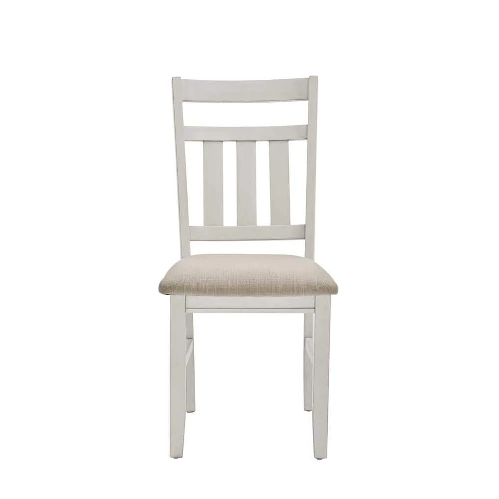 Gather around the table with this handsome distressed white dining chair featuring a classic design constructed from rubberwood and finished with padded upholstery. By balancing durability with comfort and farmhouse style, this chair offers long-lasting beauty for years to come. Pair with the matching table or bench to create a cohesive dining set, or refresh your existing table with this classic chair.