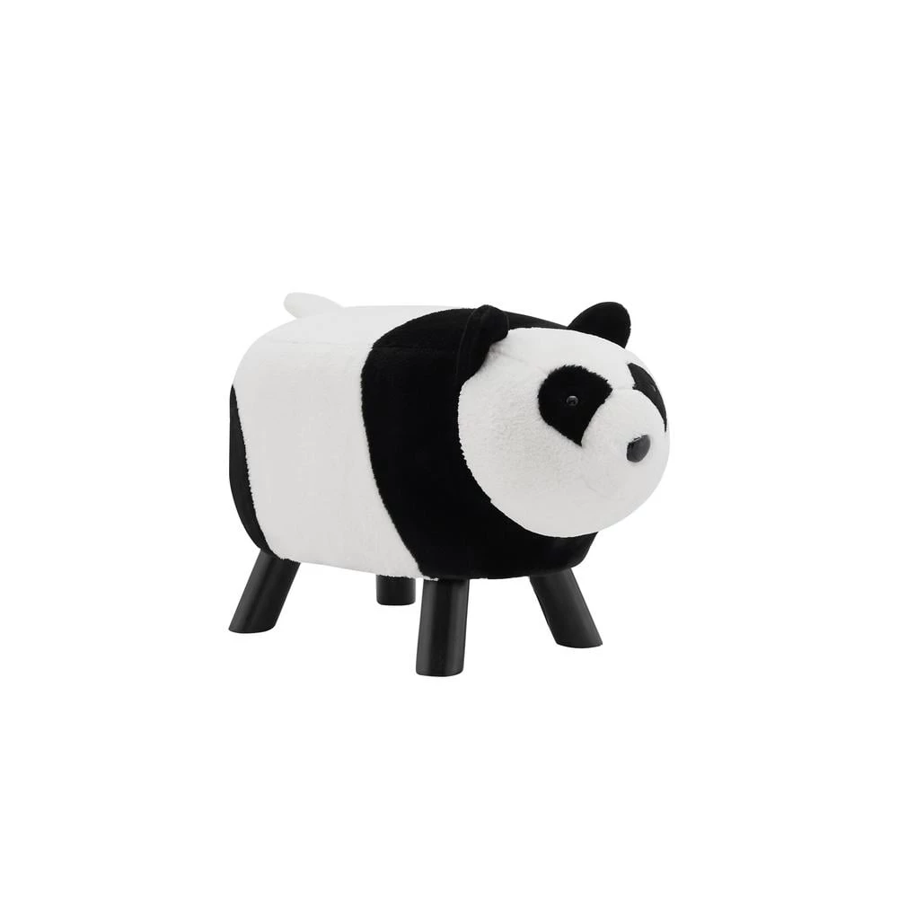Add a smile to any room in your house with this Layla Black and White Panda Bear Kids Stool. Featuring a sweet face, perky ears, soft furry body and fluffy tail, this stool is sure to be loved by children and adults alike. Perfectly suited for your young ones, this cute stool lets them kick up their feet or simply have a seat. The sturdy wood frame is cushioned and wrapped in faux fur. Easy to assemble by simply screwing on the legs.
