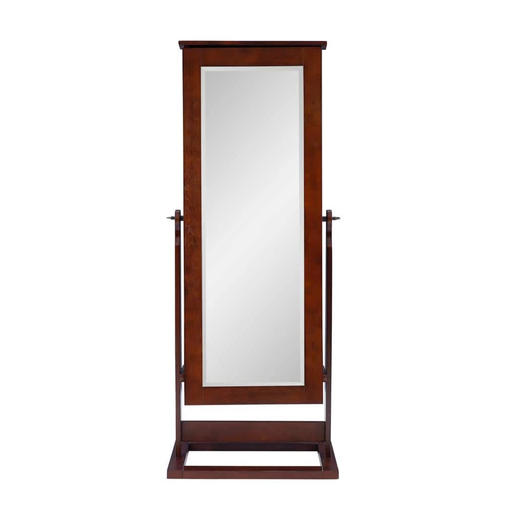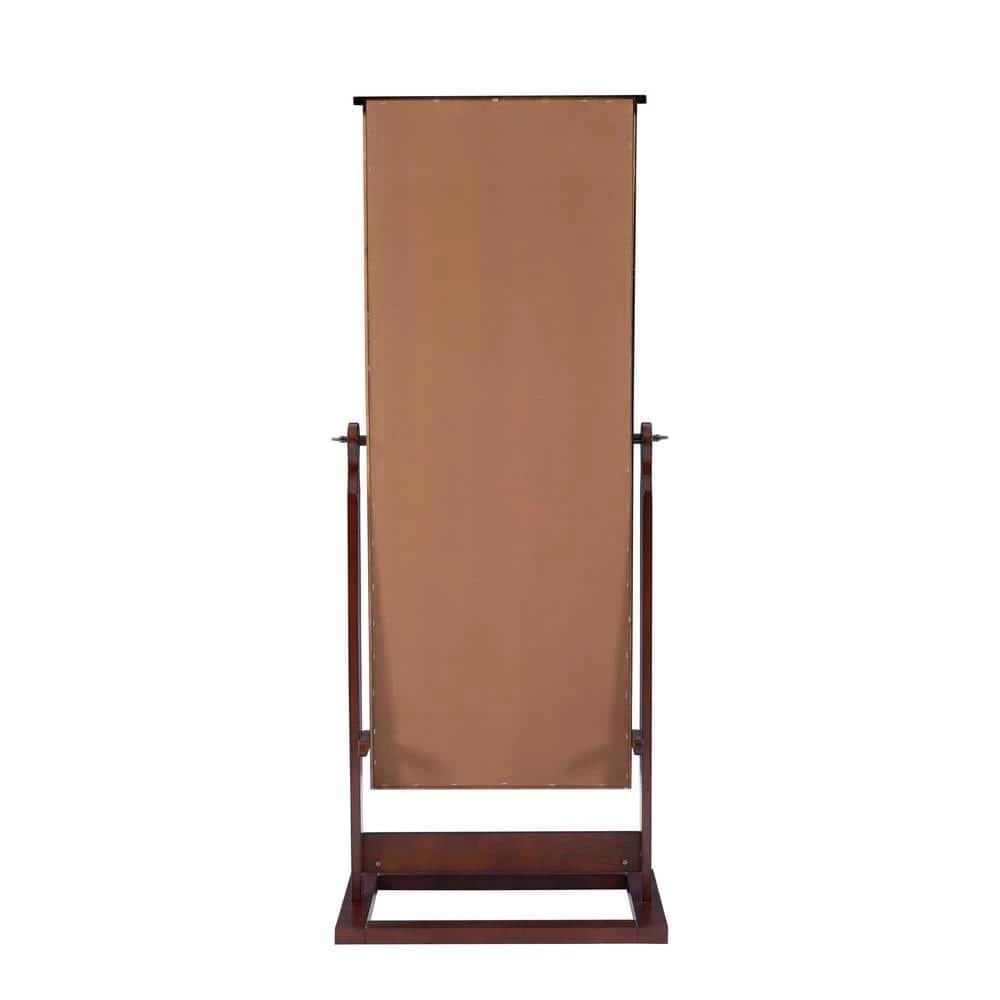 The Walnut Cheval Armoire features a simple streamlined design. A large mirrored front adorns the armoire door which opens up to reveal ample storage space for all of your prized treasures. A rich walnut finish makes this piece an easy addition to any room in your home. Some assembly required.