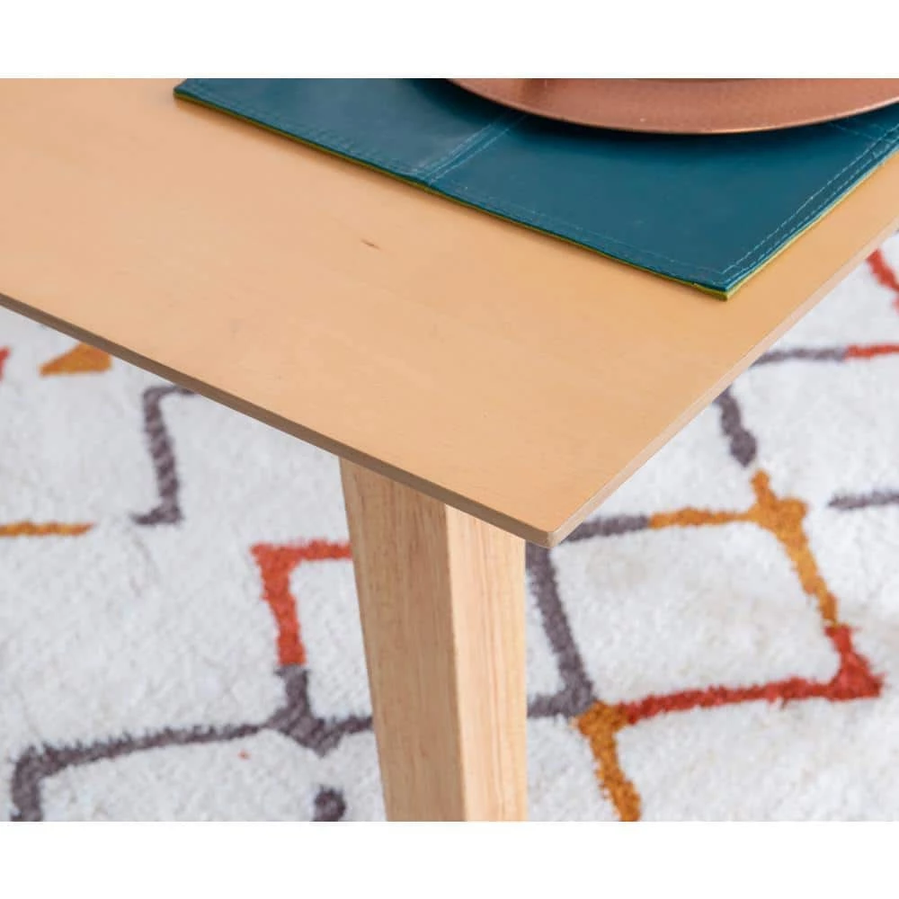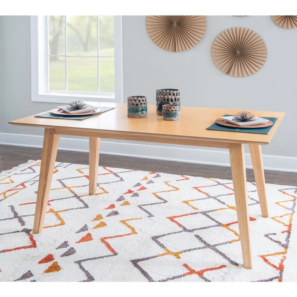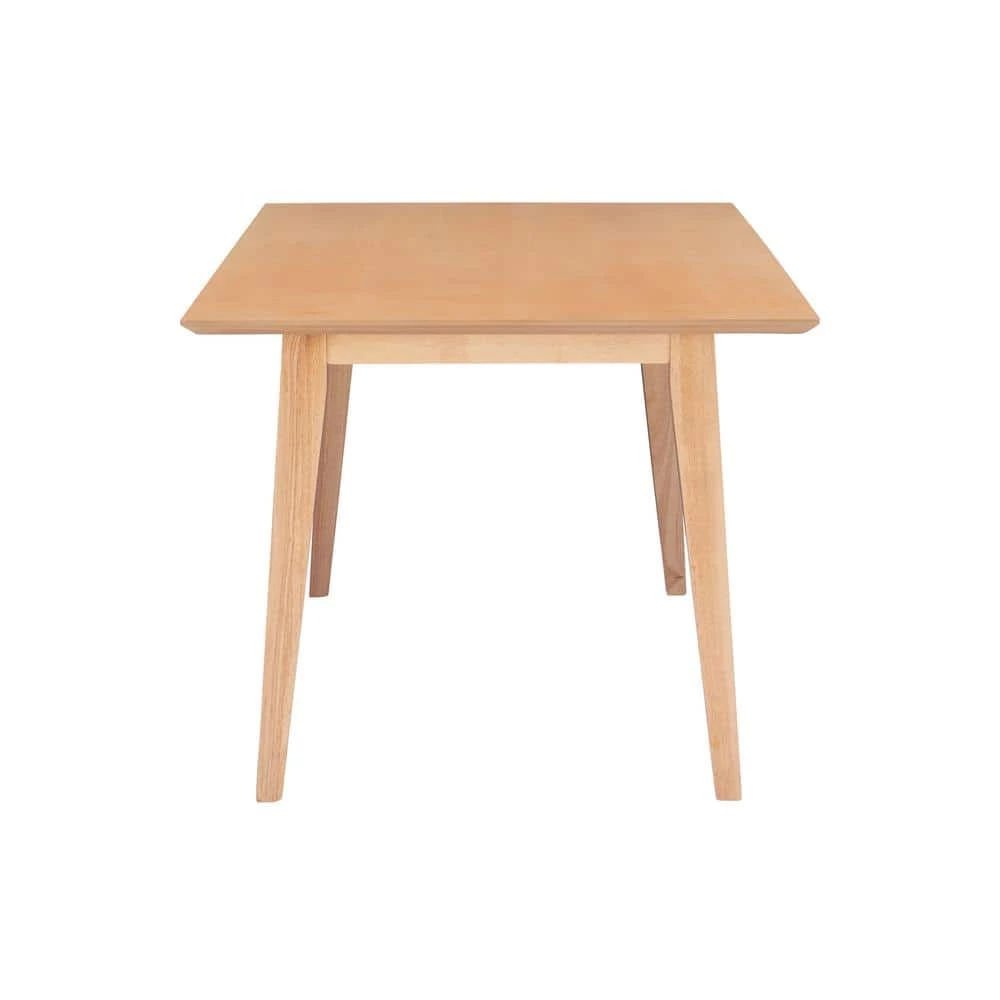 This Marlene Natural Modern Dining Table modern style dining table is the perfect centerpiece for family gatherings and meals. The tapered legs and gentle reversed beveled edge of the tabletop join to create a sophisticated look, while also lending to functionality. Up to 6 can sit around the table comfortably and enjoy generous legroom. The beautiful rubberwood veneer can also be paired with a matching bench and 4 chairs, each with seats hand woven with rope in a intricate basket weave pattern.