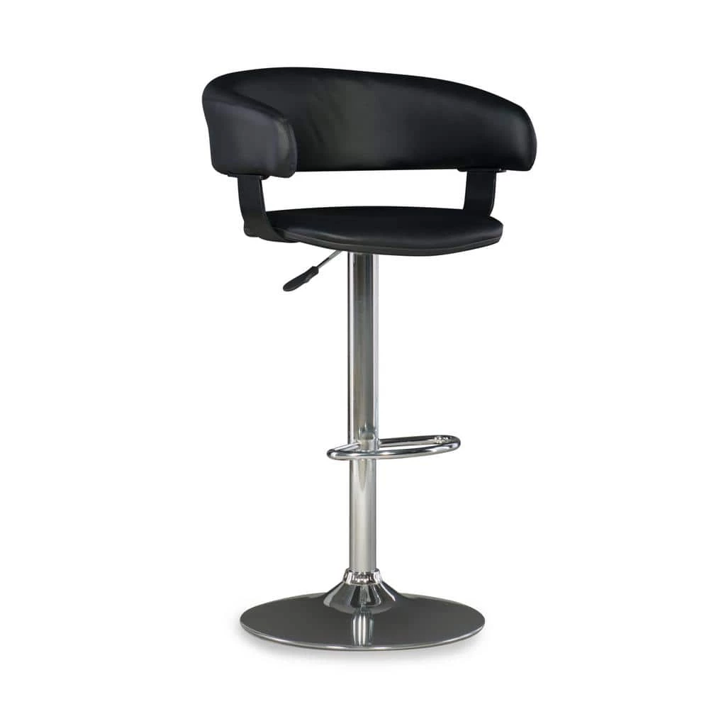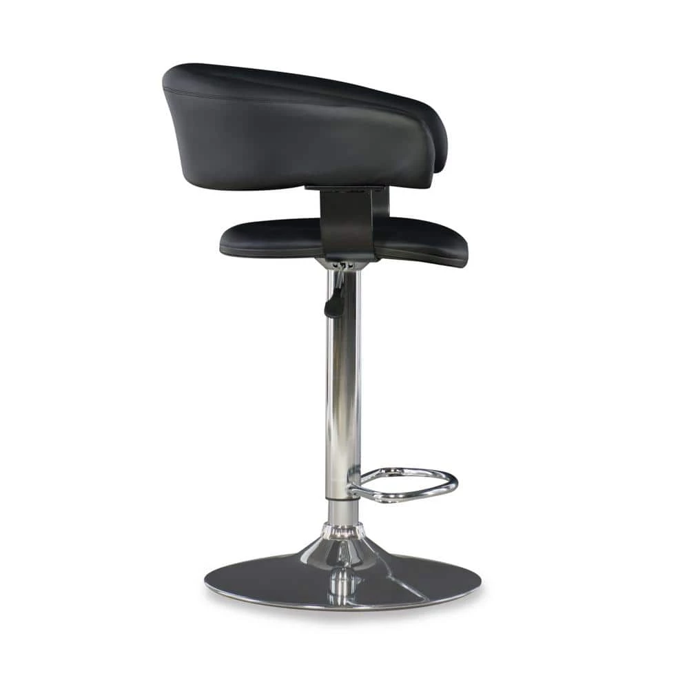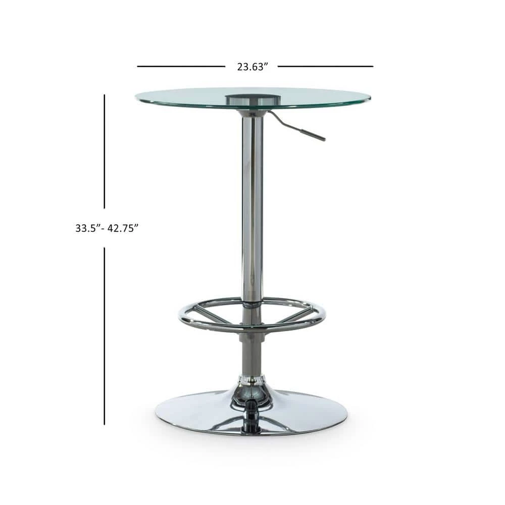 Introduce a modern flair to your gathering space with this swanky Martinez 3-Piece Round Glass Top Adjustable Chrome Base with Adjustable Black Faux Leather Barstool Bar Table Set. The plush seat cushions are upholstered in black faux leather and matched by curved backs for added comfort and stability. Both the rounded glass tabletop and stools are supported by circular pedestal bases made of metal and covered in polished chrome for a sleek shine. Each base is outfitted with a footrest and gas lift so you can easily adjust the height of the whole set and lounge on your own terms. The table supports up to 100 lbs., while the stools hold up to 225 lbs. a piece, all arriving with minimal assembly required.