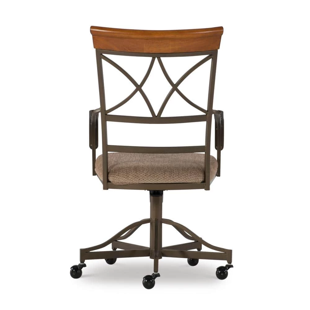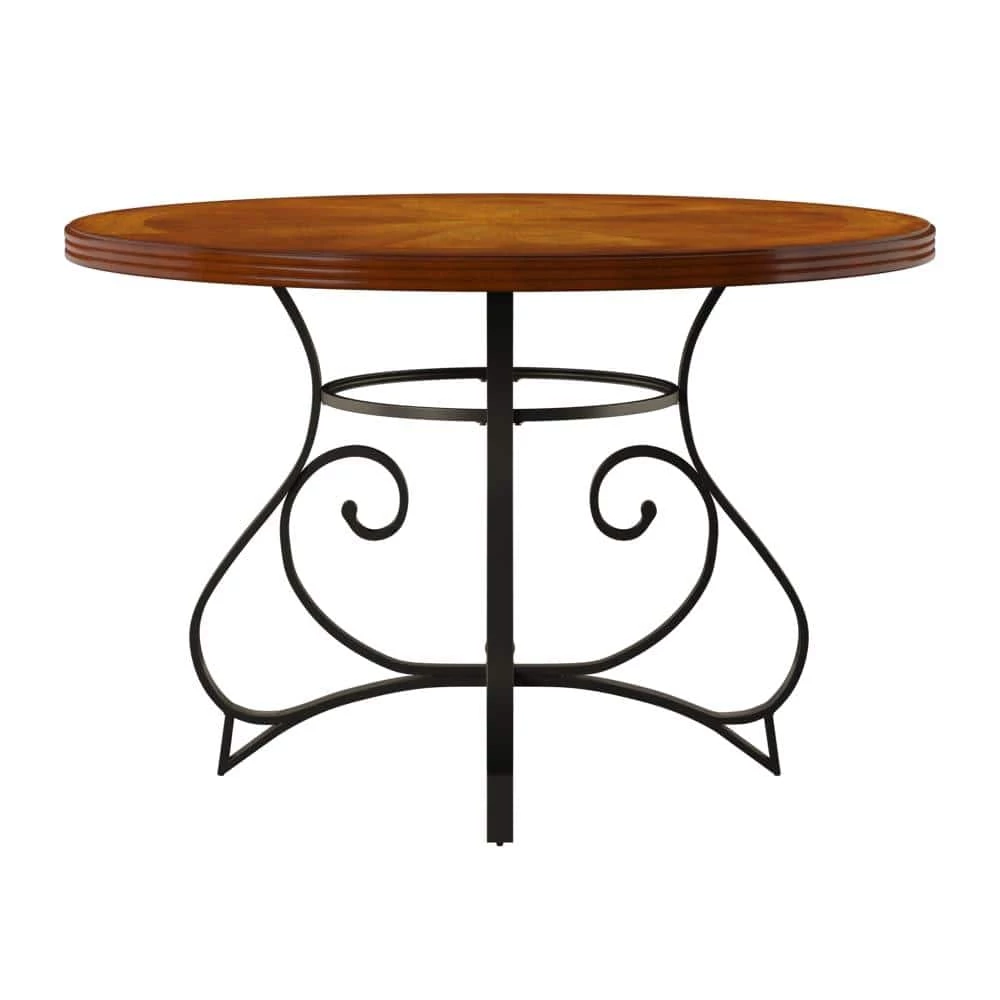 - Finished in “Brushed Faux Medium Cherry” wood & “Matte Pewter & Bronze” metal