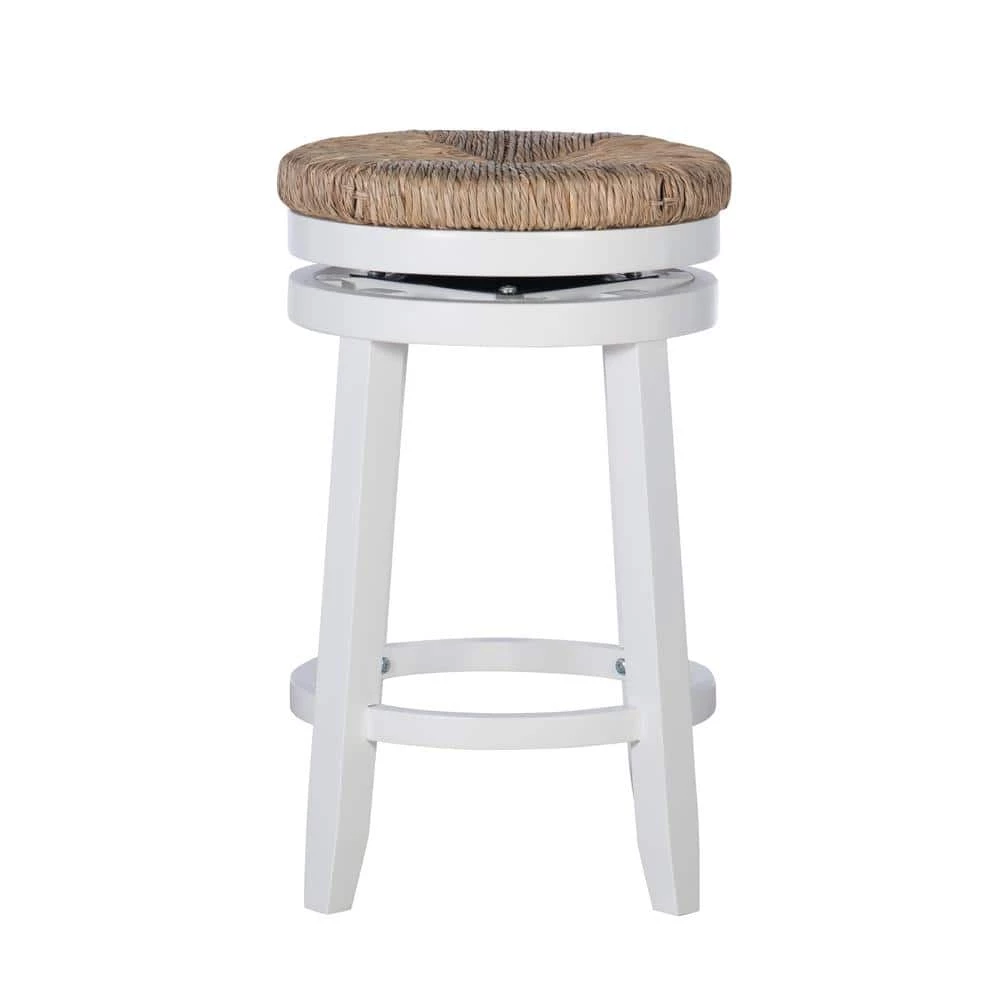 The Mesquite White Counter Stool provides a simple sturdy round frame accented by the natural sea grass swivel seat. This casual Counter Stool with its beautiful white finish will compliment any decor. Some Assembly Required.