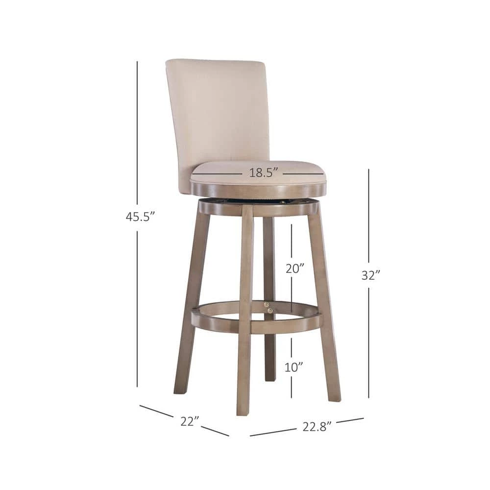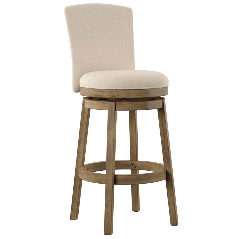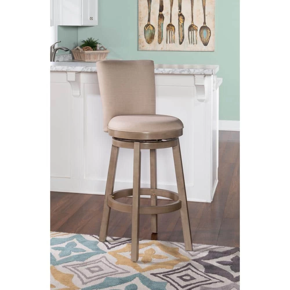 This Mike Big and Tall Bar Stool has a rustic, yet elegant look that offers instant style to your home decor. Upholstered in a natural linen-look fabric with a rounded back and circular seat, this graceful stool is both comfortable and fashion forward. Rustic Taupe finish. Some assembly required. 360°, 10″ Swivel Plate.