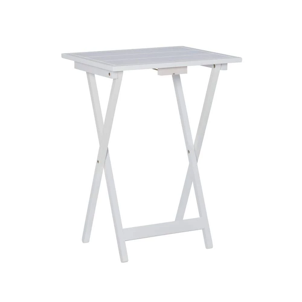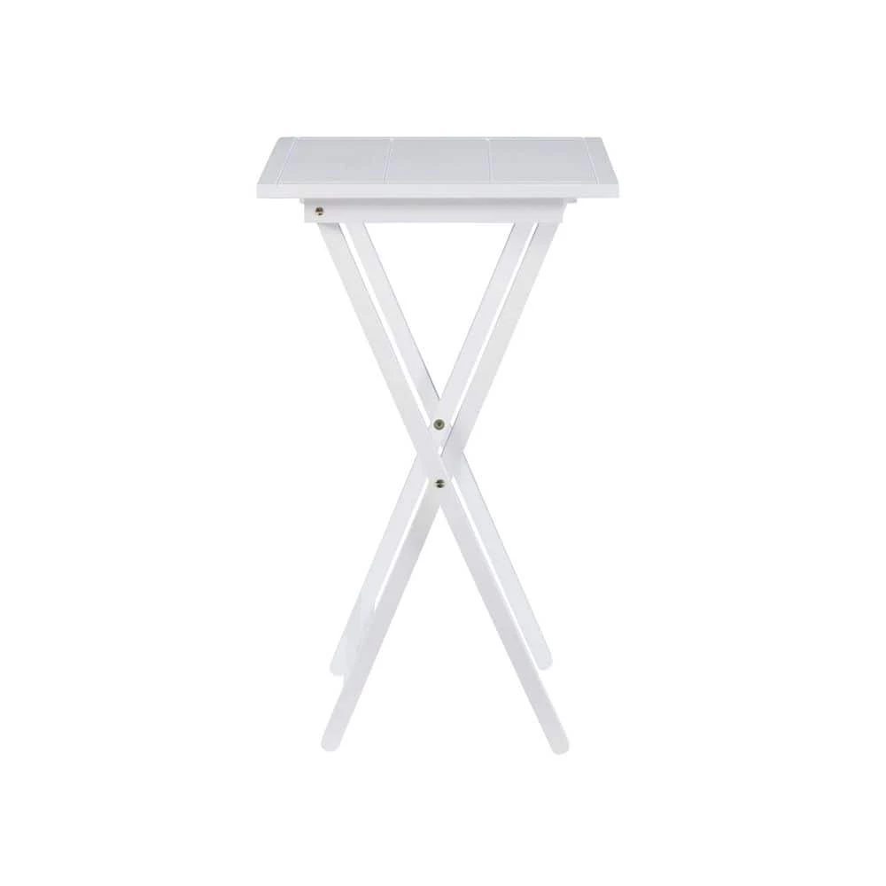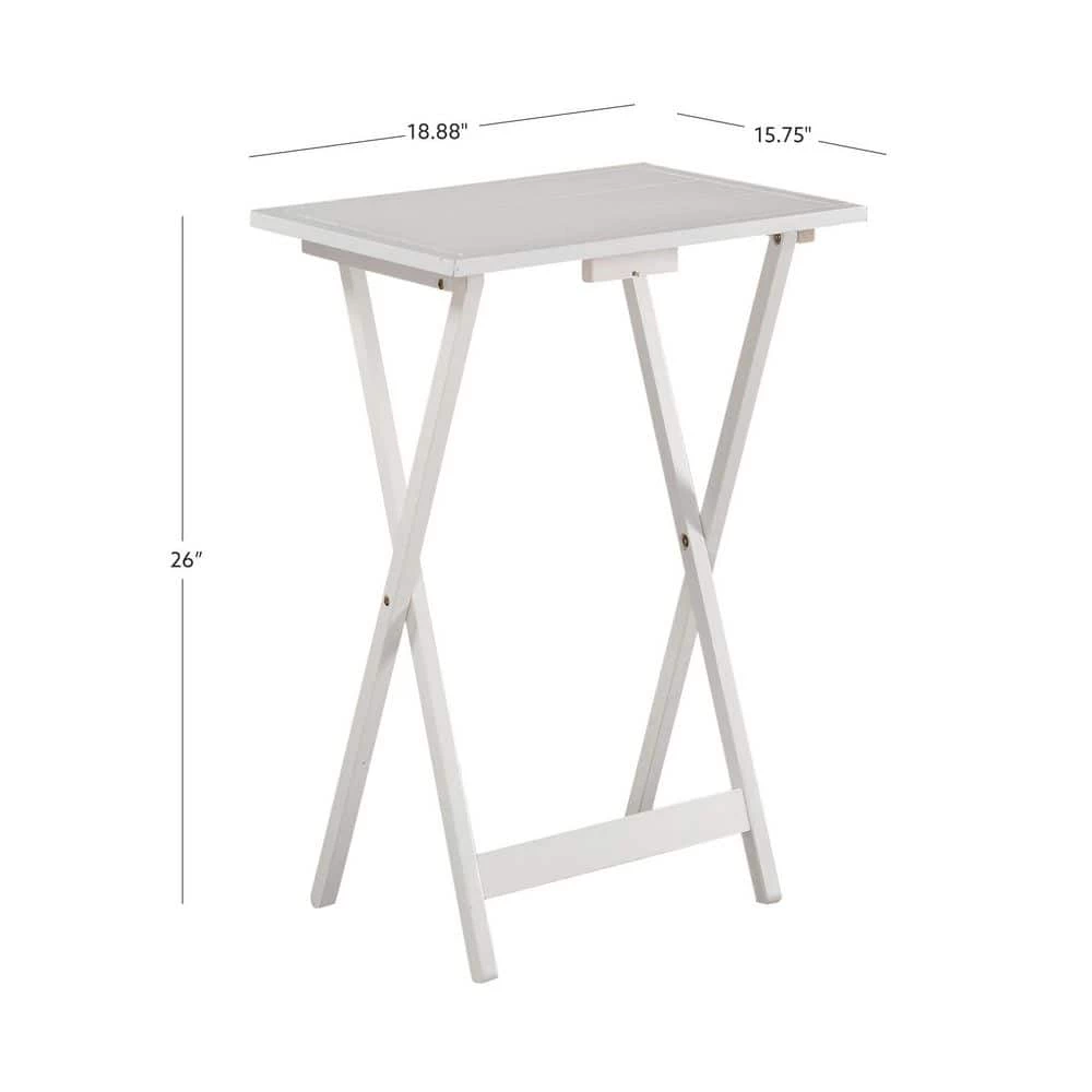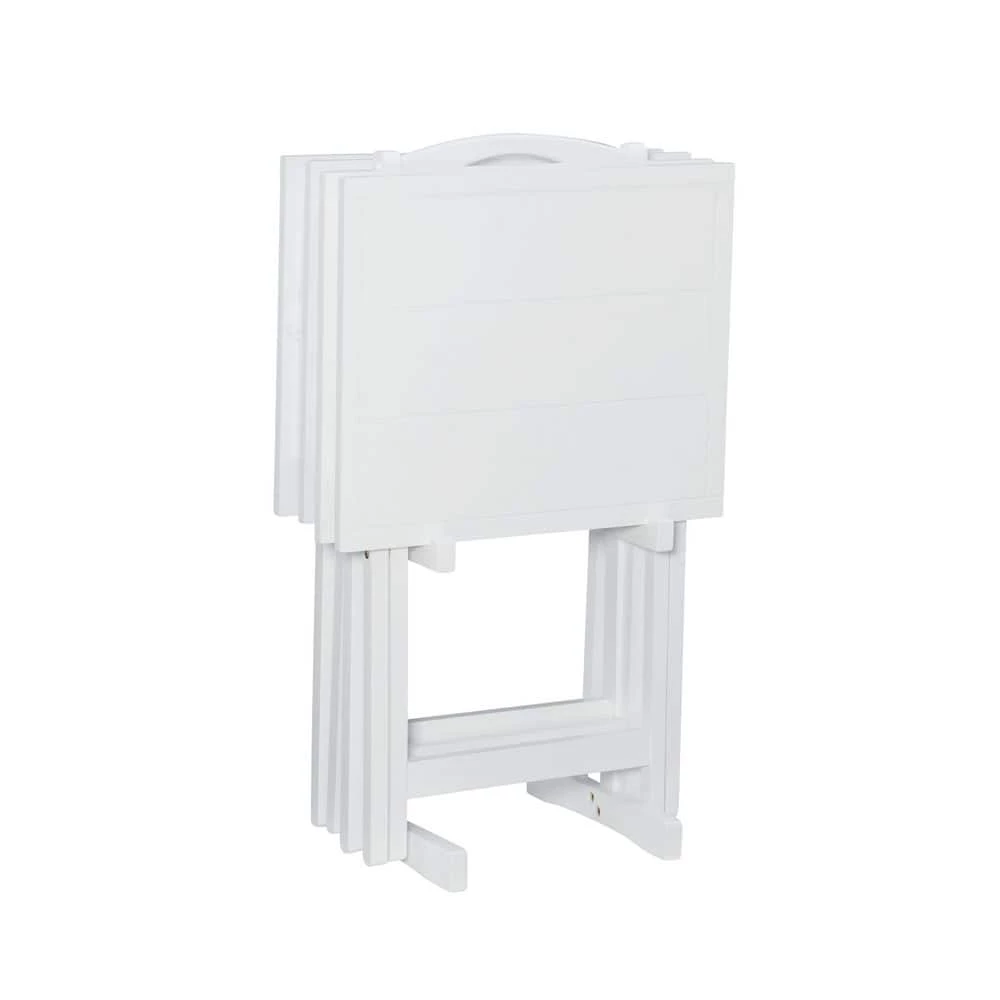 Fit for function and style, the Pahrump Tray Tables five piece set has a fresh, cottage flair. The wood stand provides easy storage and has a wood handle for portability. These lovely whitewash tray tables will be an easy pick for use in any room of your home. Includes 4 tables and base.