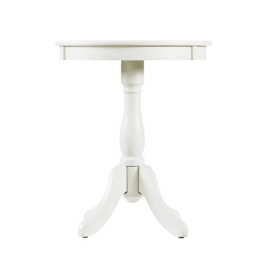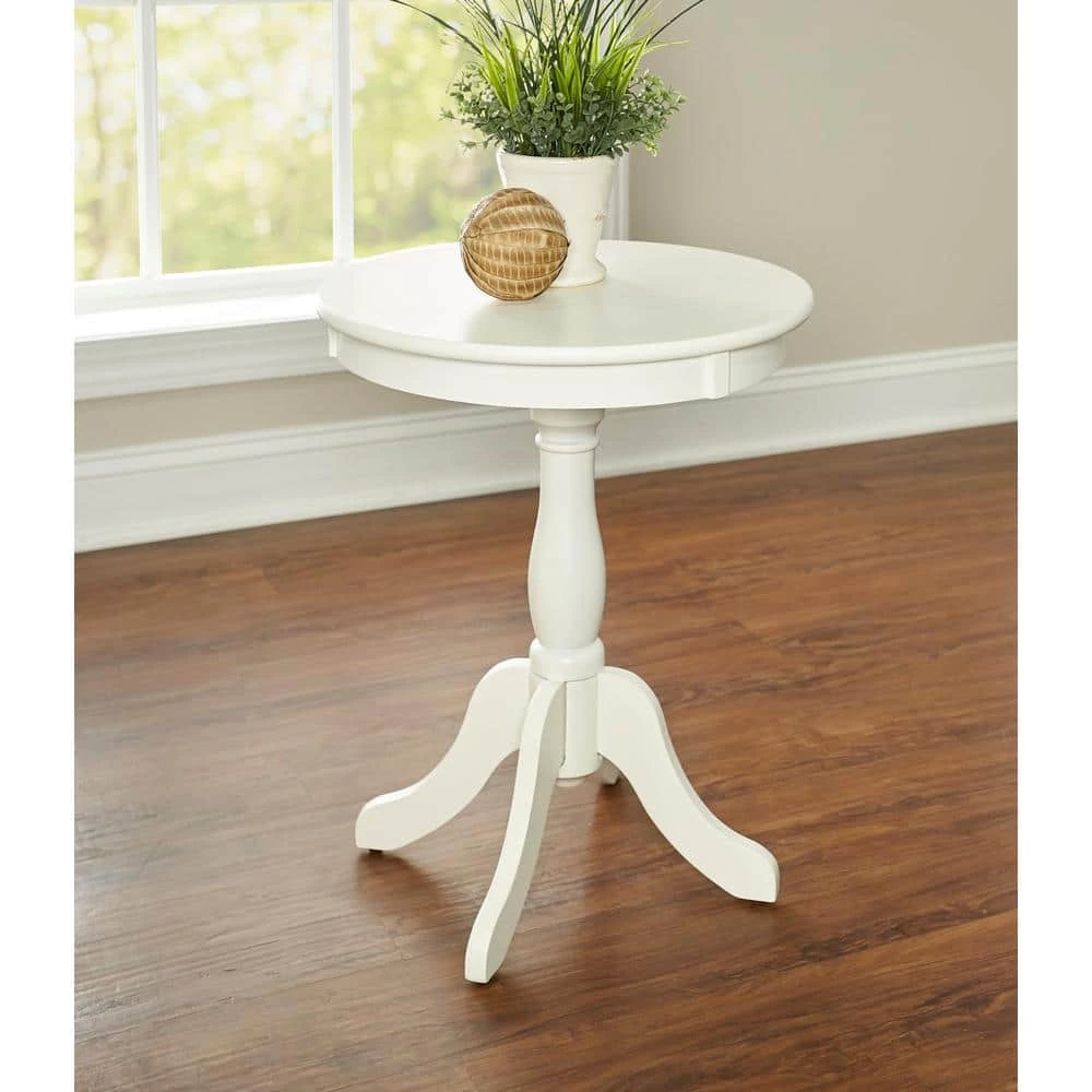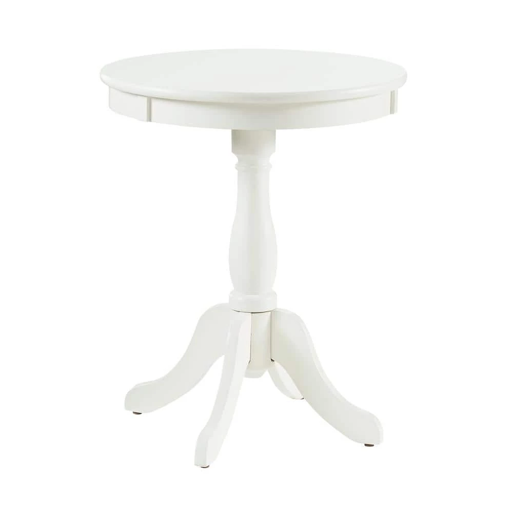 This Palmer White table is the perfect fit as a chairside table for any room. Features a round pedestal base, made from select hardwood veneers and solid wood material, and has contemporary styling with a bentwood skirt. Some assembly required.