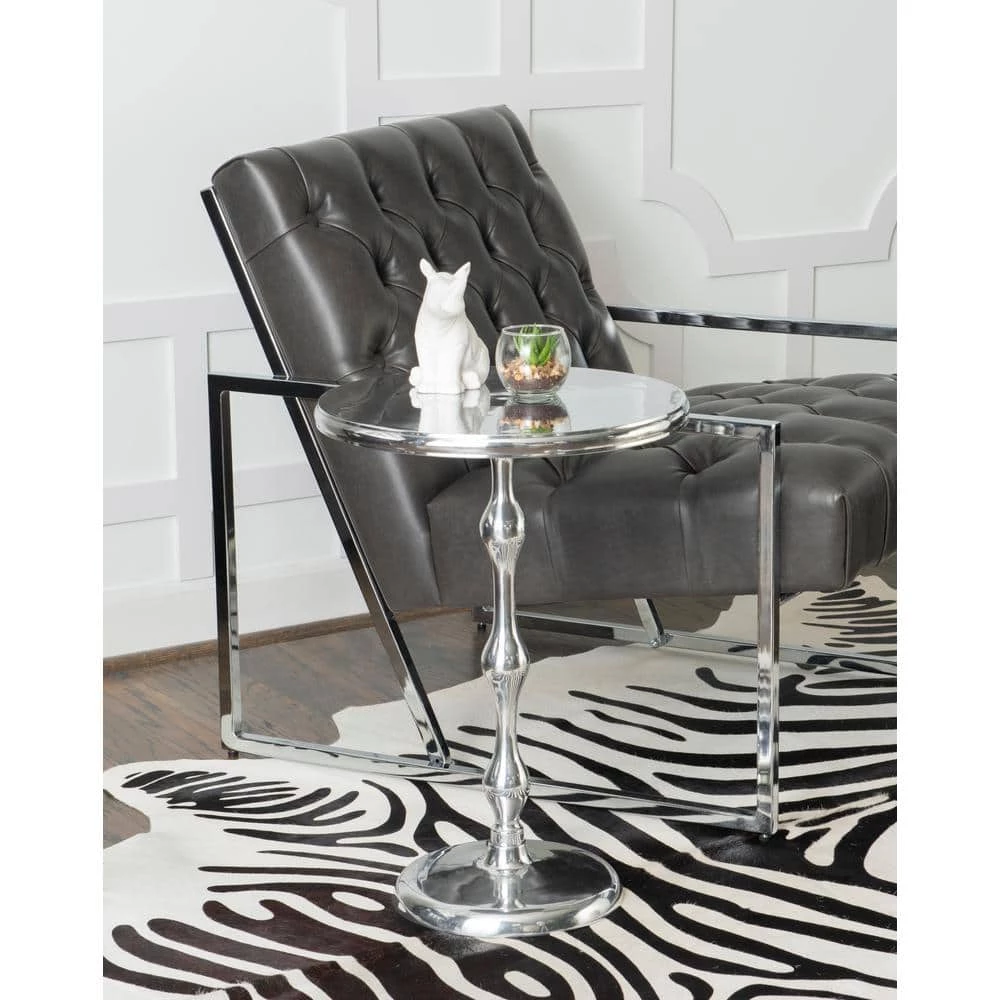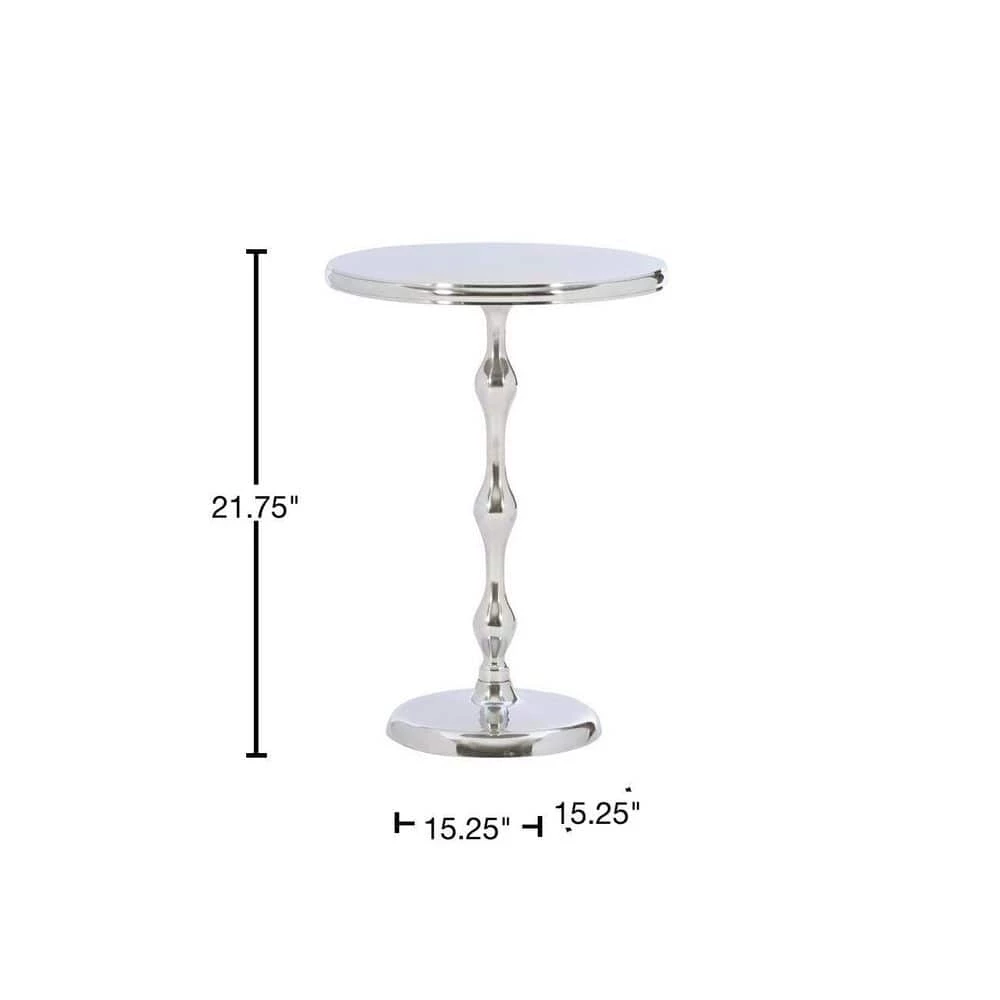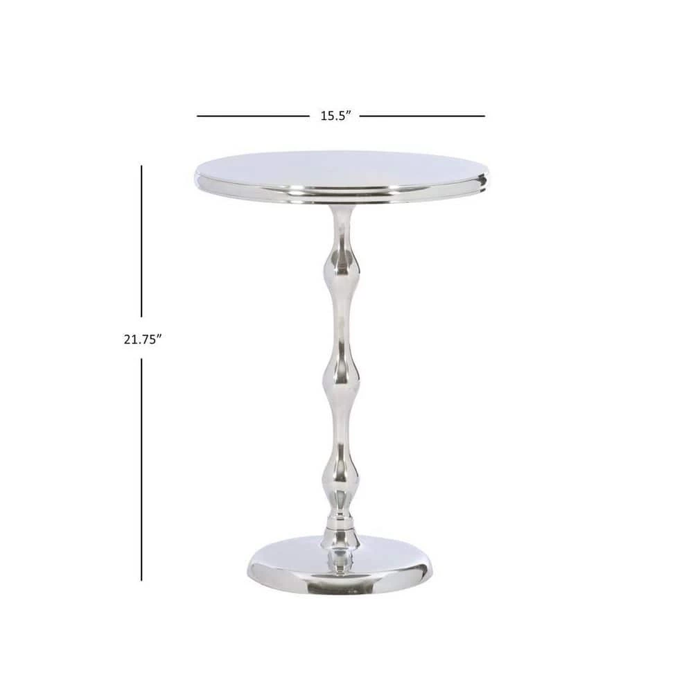 Bring understated elegance to any space with this exquisite Phoebe Silver Metal Side Table. Featuring a polished silver finish, this decorative metal stand makes a stunning accent piece for your living room or bedroom. The small round top design is conveniently sized to nestle beside a sofa, between two chairs, or even beside the bath. It’s a perfect stand to set a drink on or display a favorite photo. Vintage or modern, retro or urban boho, this classic design is sure to enhance any home decor.