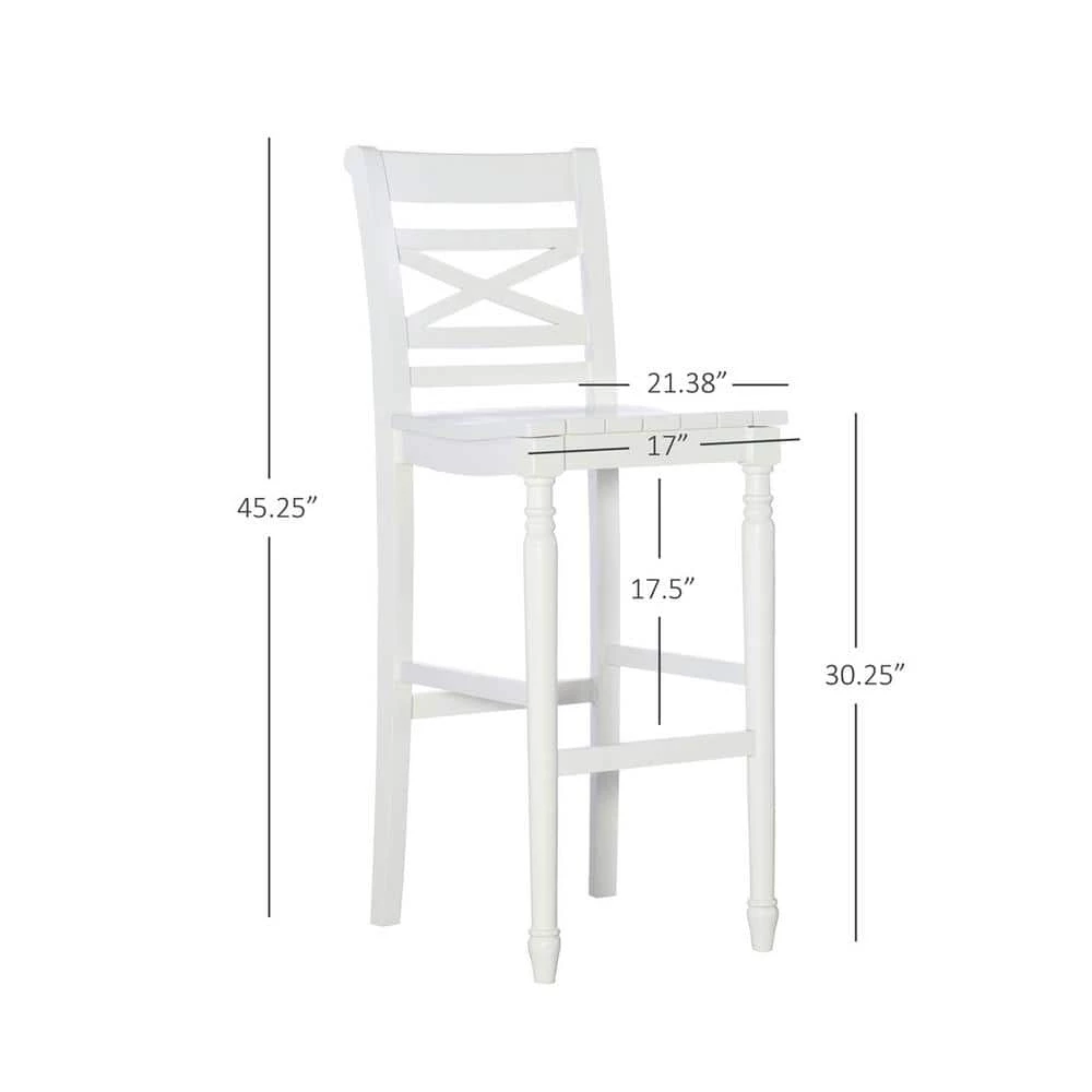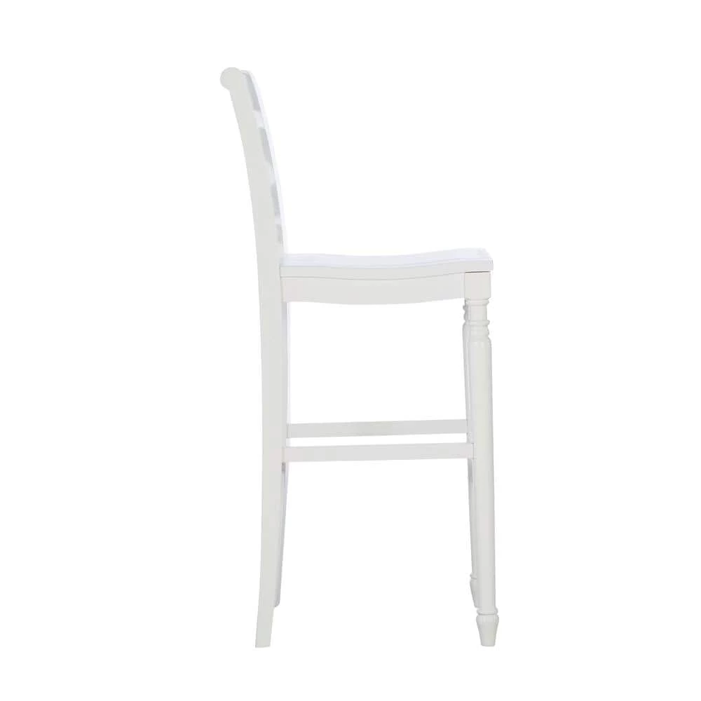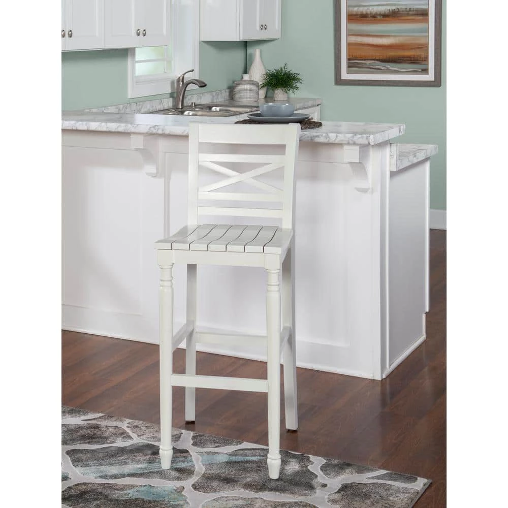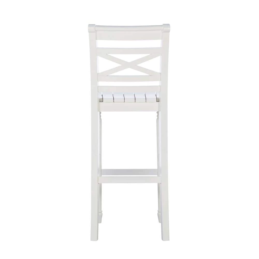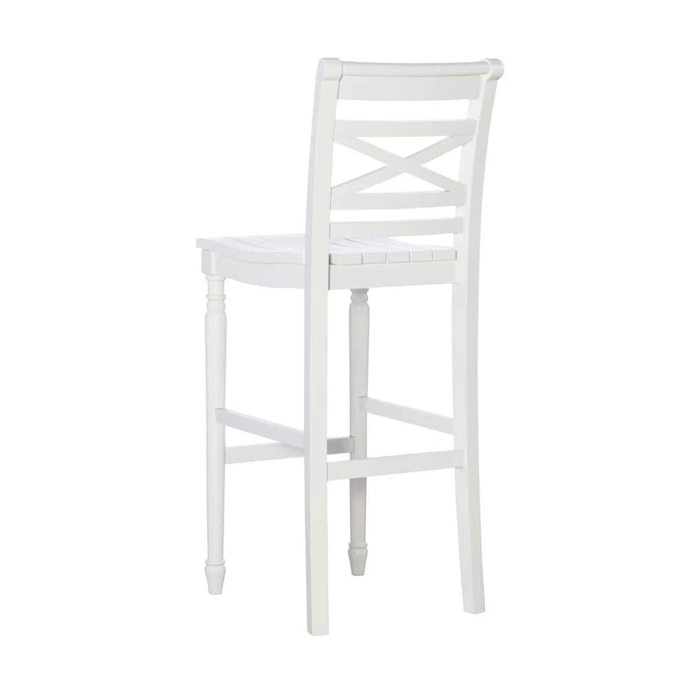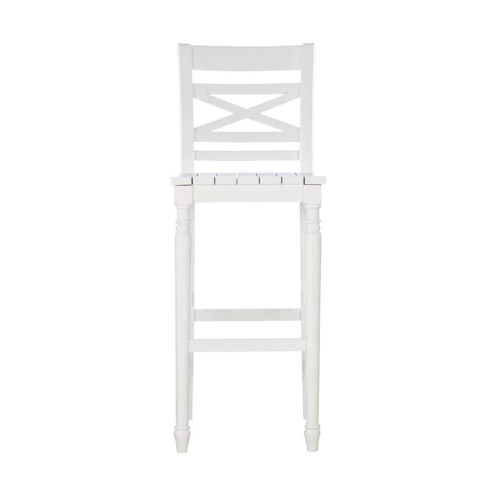 The Primark Bar Stool is perfect for your casual home dcor. The stool features a planked seat and white finish, while the tall back provides support and has a small “X” motif detail. The turned legs add to the style and have stretchers for added stability.