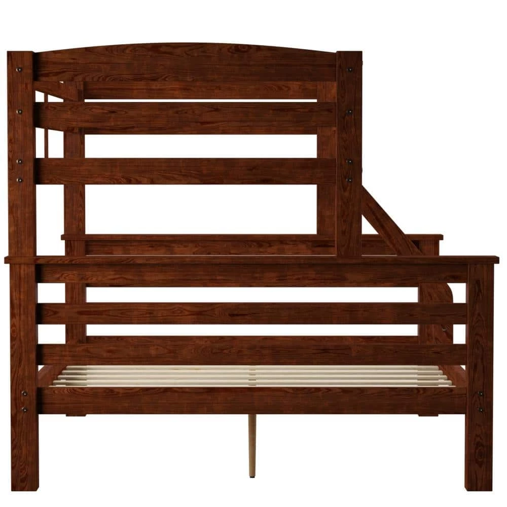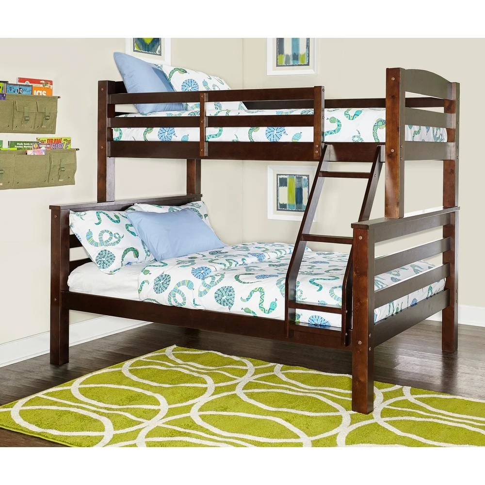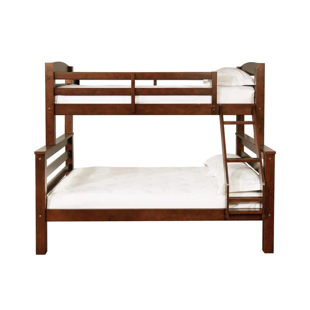 Combining classic style with a sleek modern look, the Sanders Twin Full Bunkbed in Espresso is made for today’s youth. The bunk bed is made of pine wood and offers extra room for guests or siblings, featuring a twin bed over a full bed. The headboard and footboard have a curved slat detail with sturdy square posts. The ladder is built-in and the heavy, duty slats will support a mattress without needing a Bunkie board. Made to withstand, the beds have a 400 lbs. static weight limit for each bunk surface. Espresso finish.