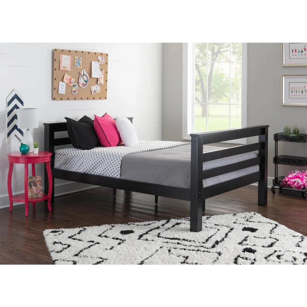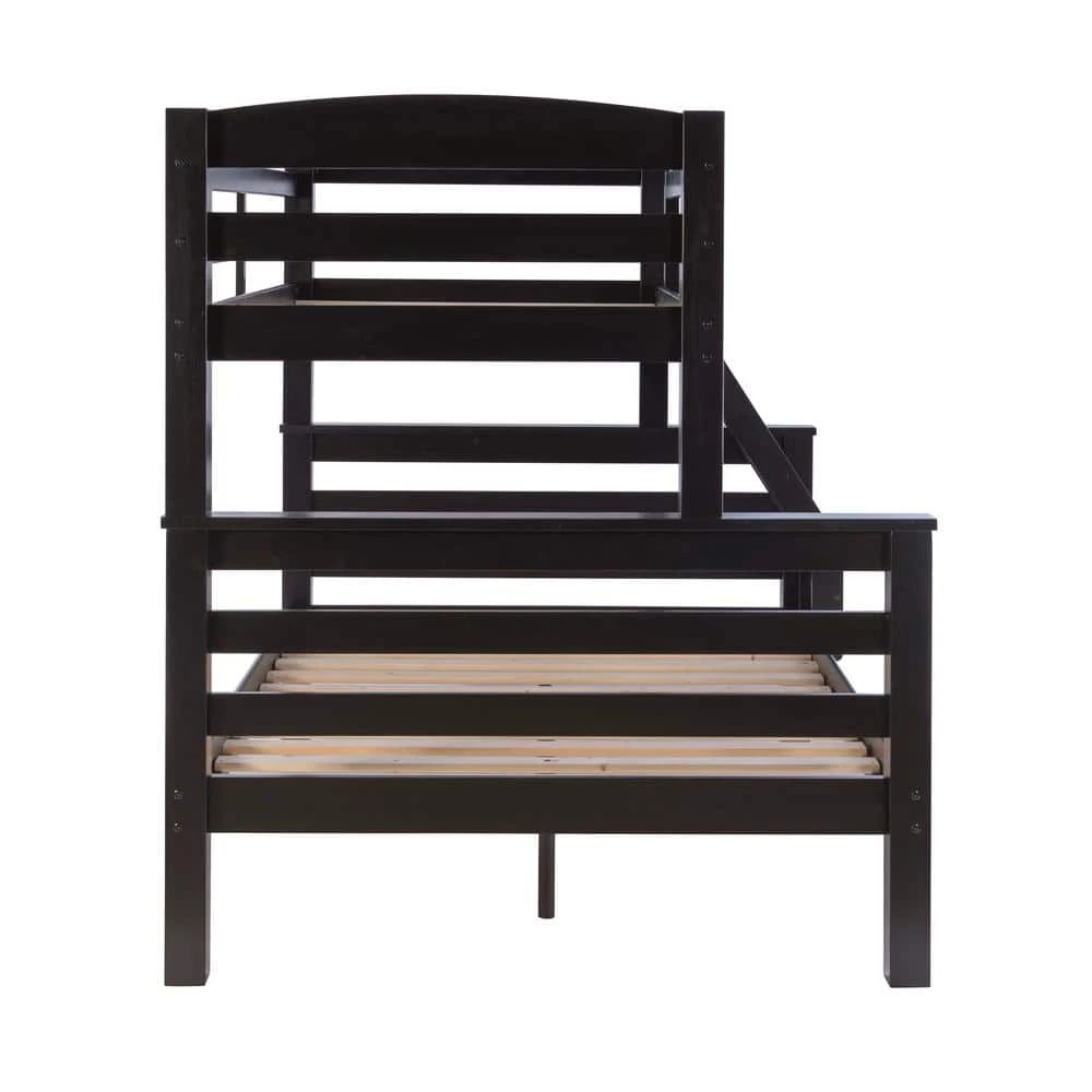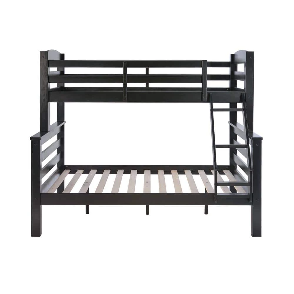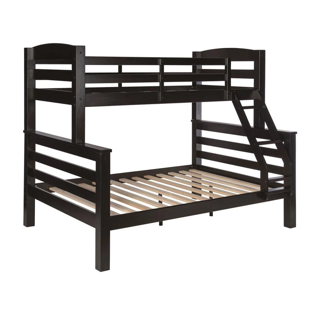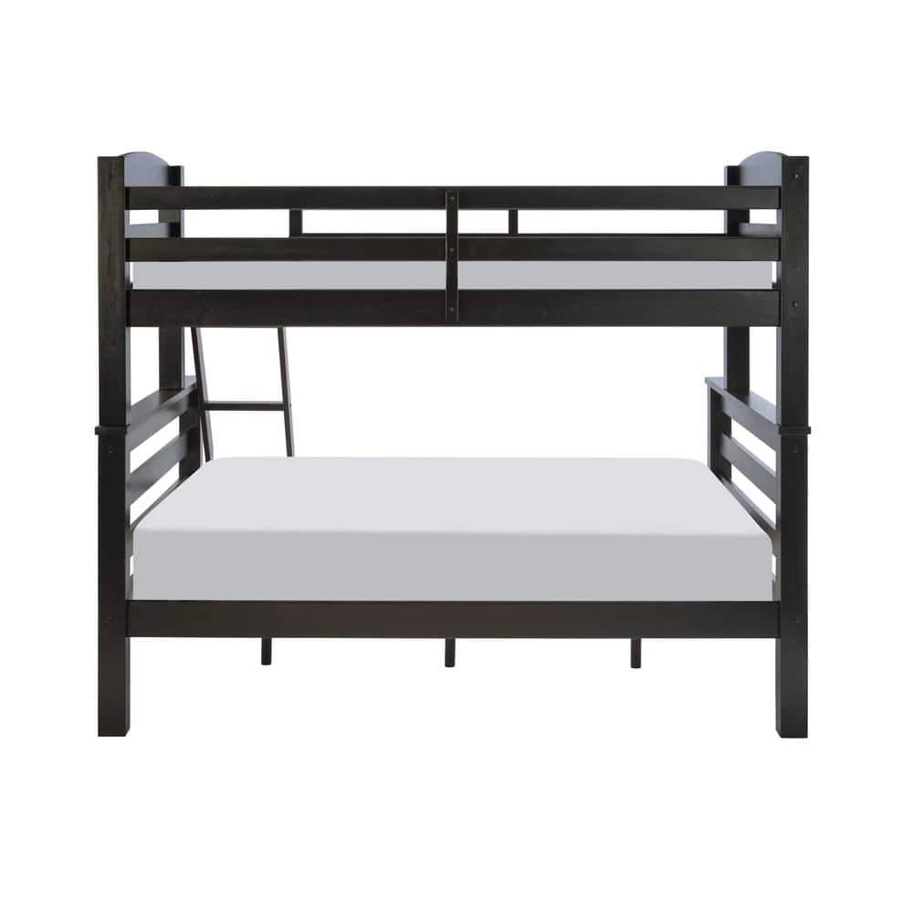 Combining classic style with a sleek modern look, the Sanders Twin Full Bunkbed is made for today’s youth. The bunk bed is made of pine wood and offers extra room for guests or siblings, featuring a twin bed over a full bed. The headboard and footboard have a curved slat detail with sturdy square posts. The ladder is built-in and the heavy, duty slats will support a mattress without needing a bunkie board. Made to withstand, the beds have a 400 lb static weight limit for each bunk surface. Black finish.