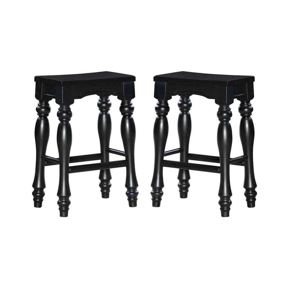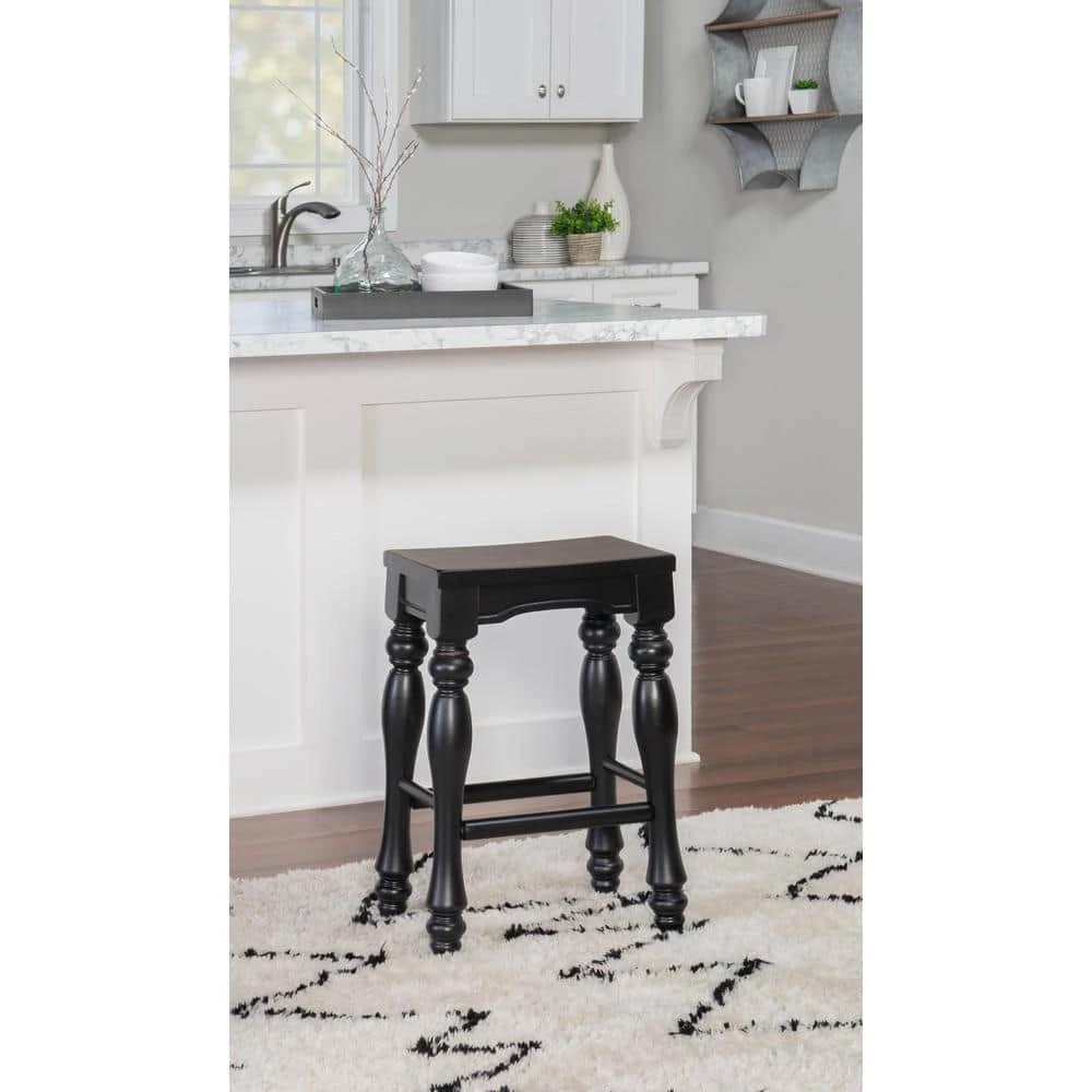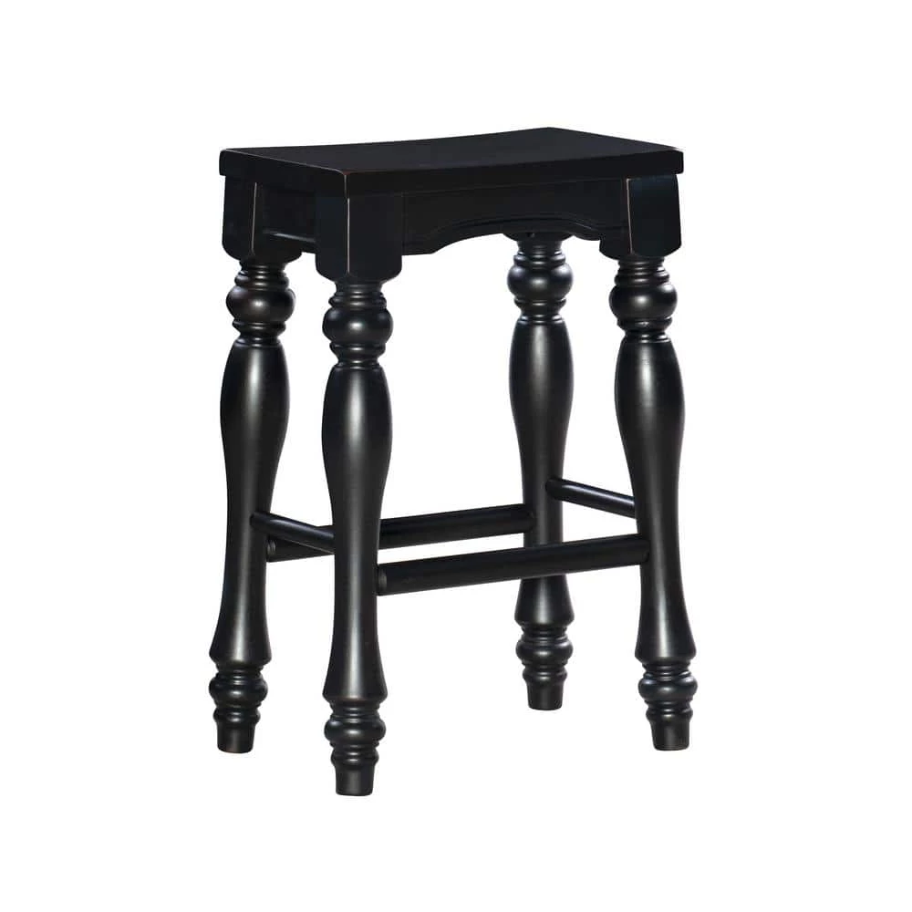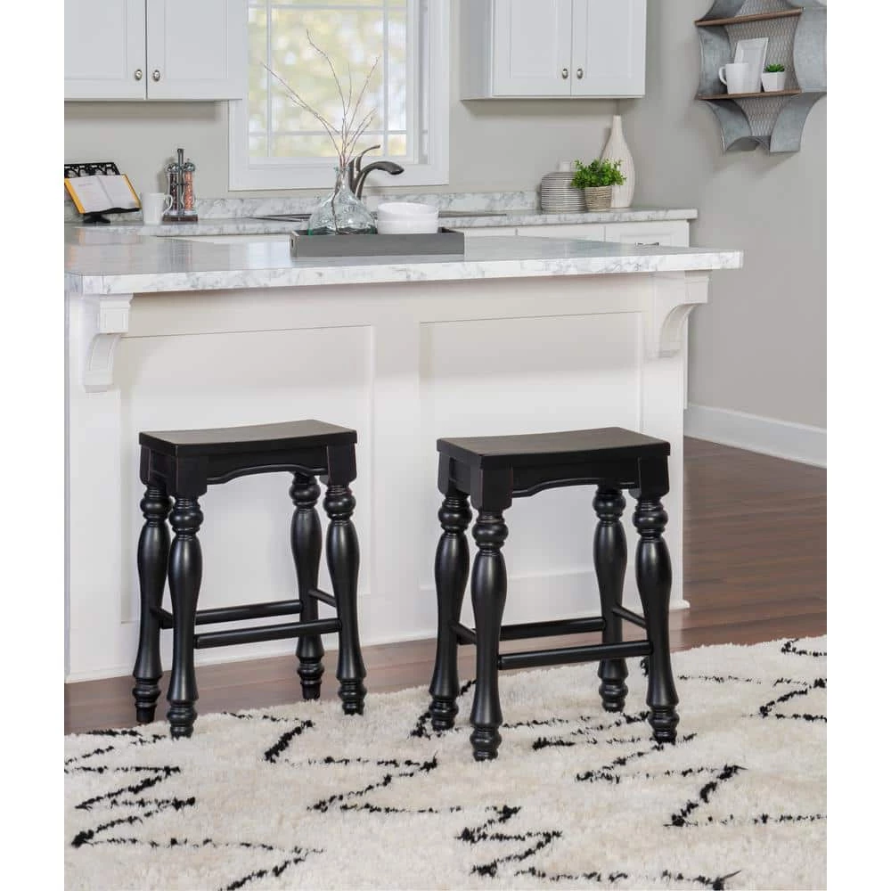 Schroder Counter Stool in Black Sand-Through finish with turned legs and solid wood seat. Some assembly required. Set of 2 included.